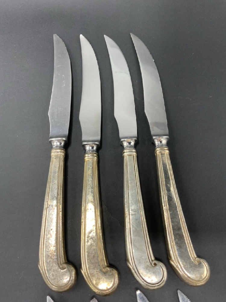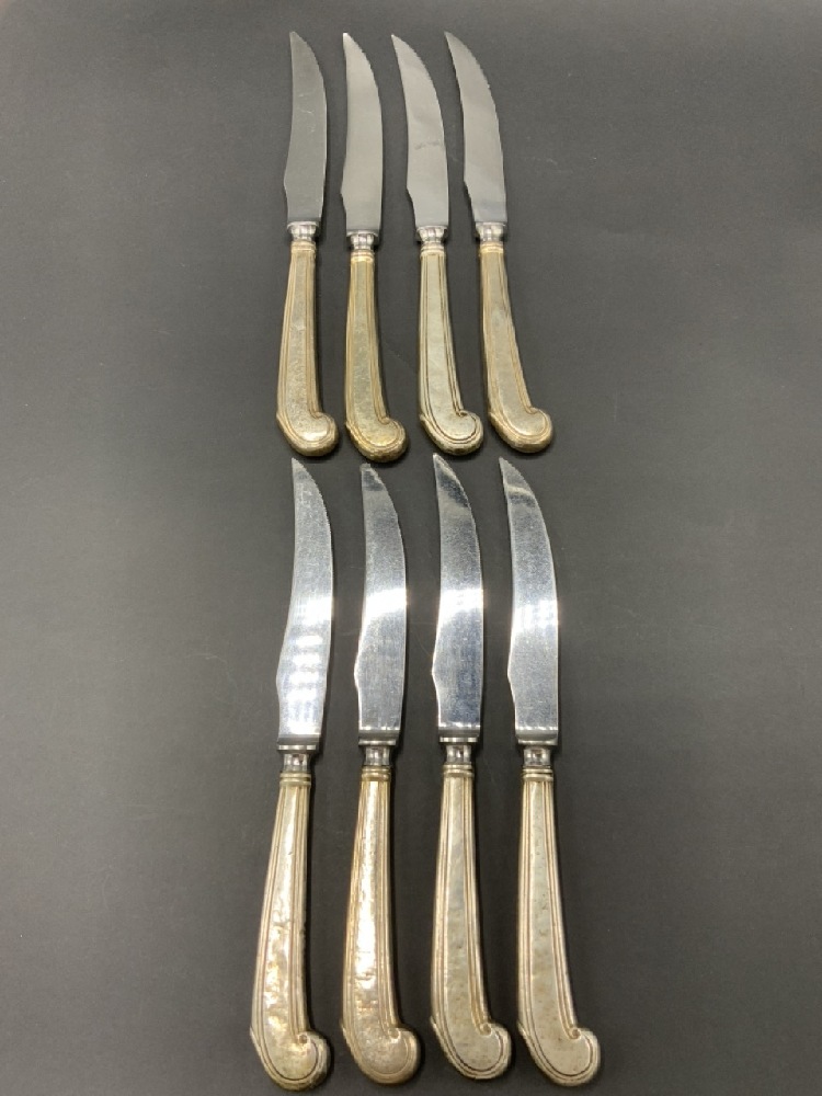 Set Of 8 Sterling Silver Handled Knives Olde English Cutlery Corp. Stainless blade.