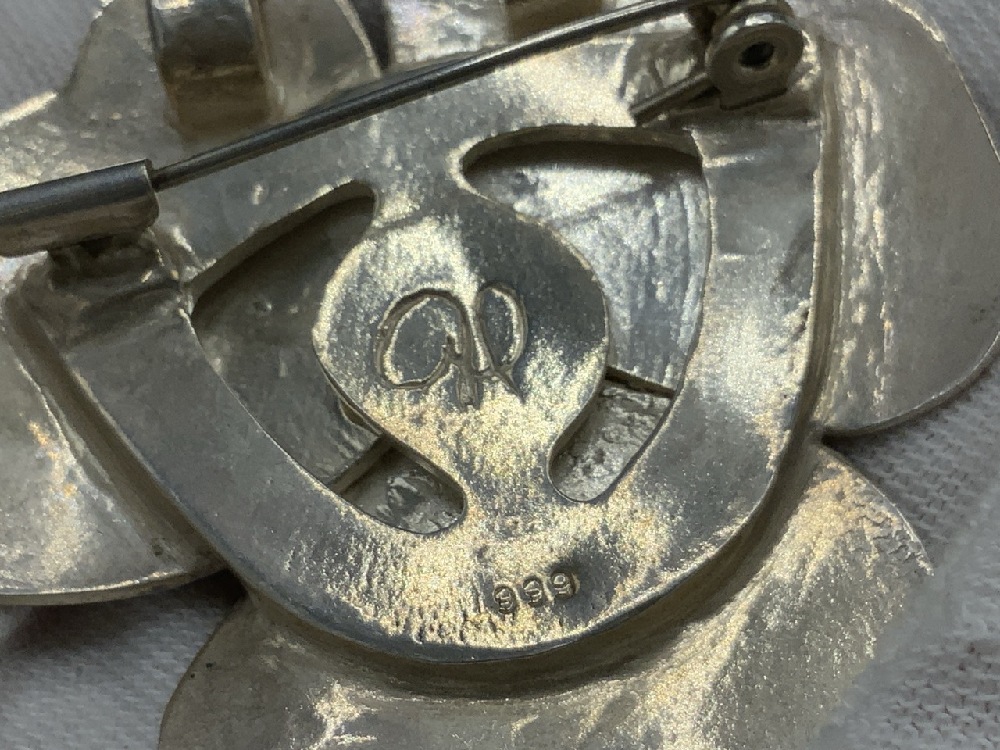 .999 Silver Flower Pendant Mother of Pearl Pin.