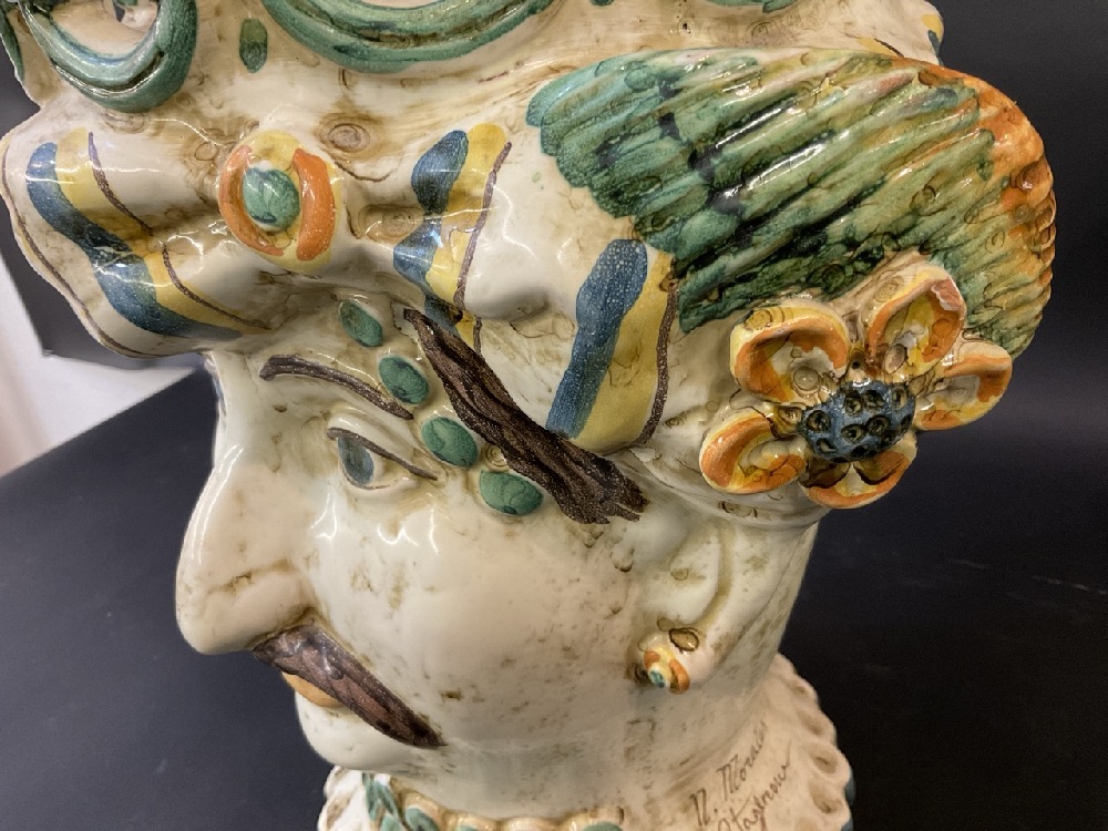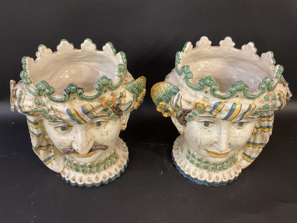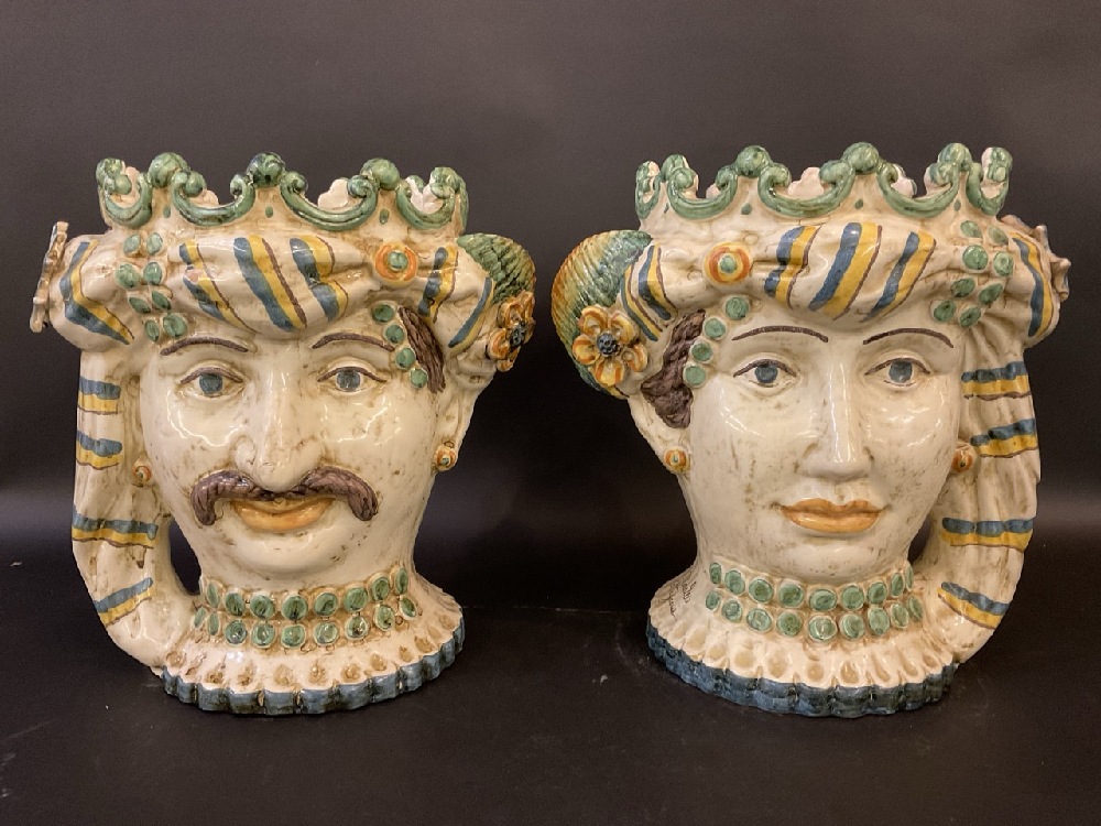 Nicolò Morales, Caltagirone Sicily Ceramic Pair of Heads.