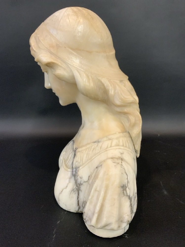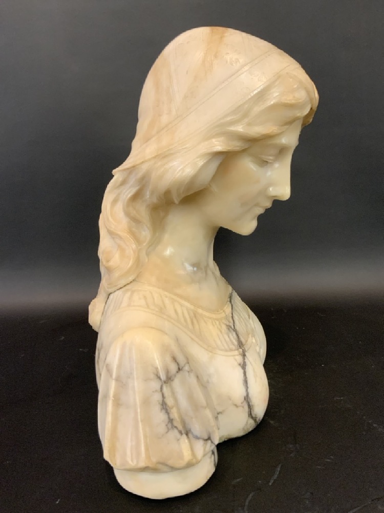 19th c. Italian carved marble bust of Maiden. Unsigned.