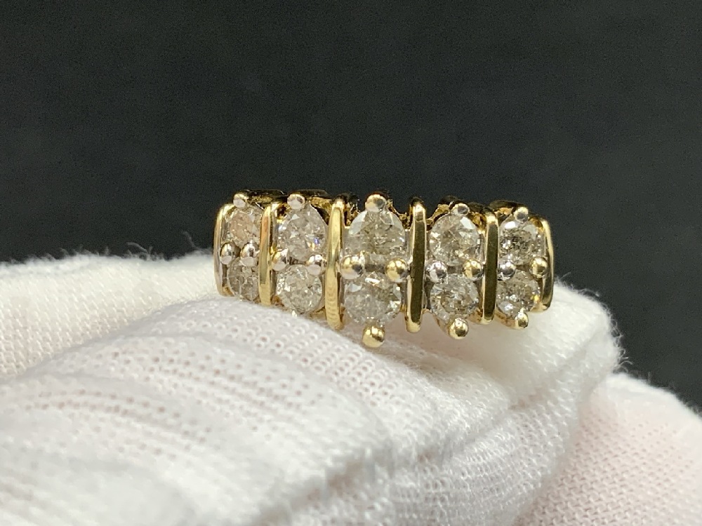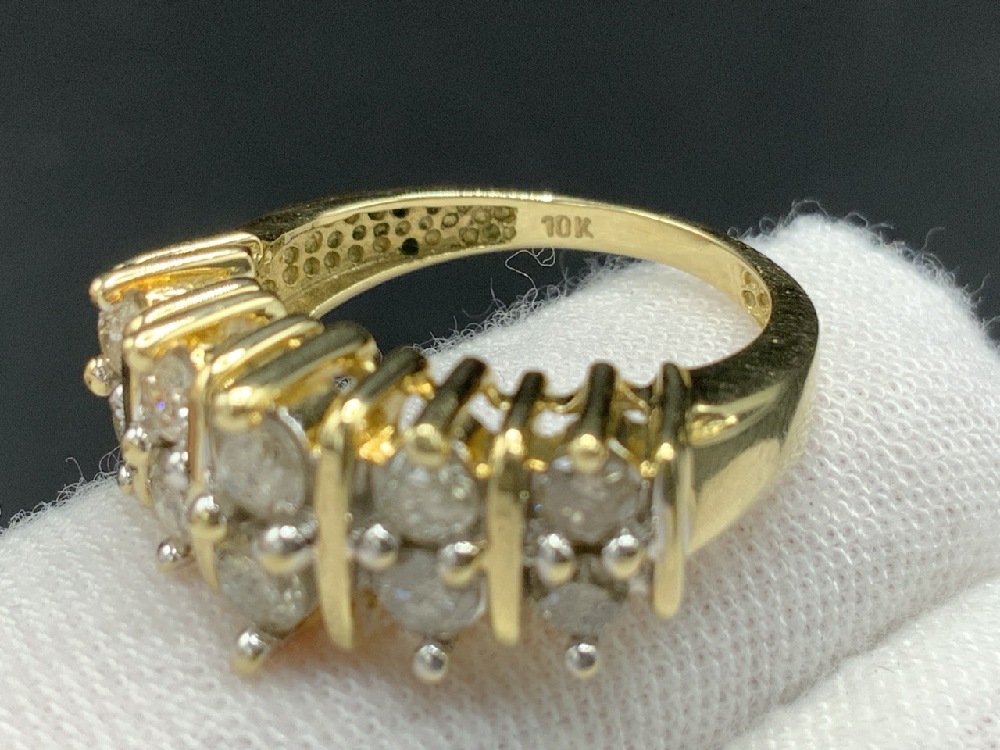 10K Yellow Gold Diamond Ring. Ten diamond total.