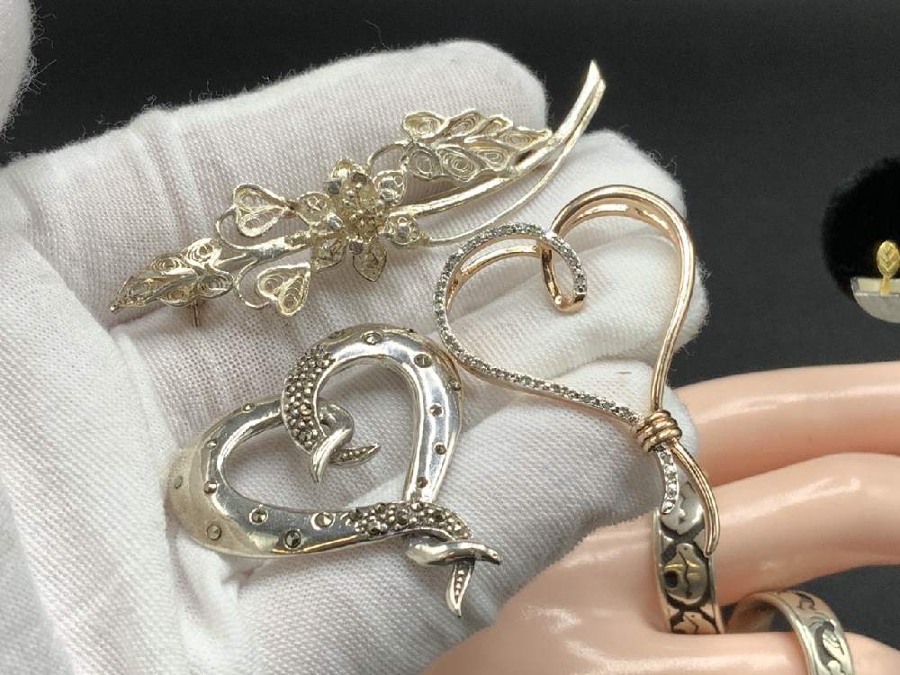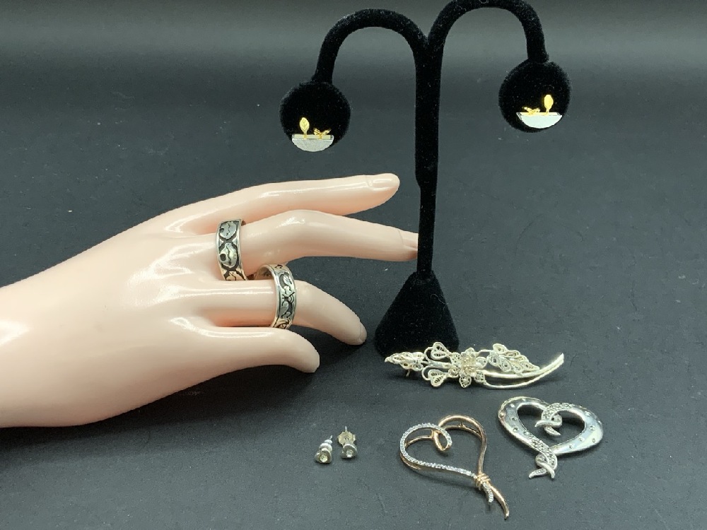 8 Piece Sterling Silver Lot — Rings, Earrings, Pin, & Pendant