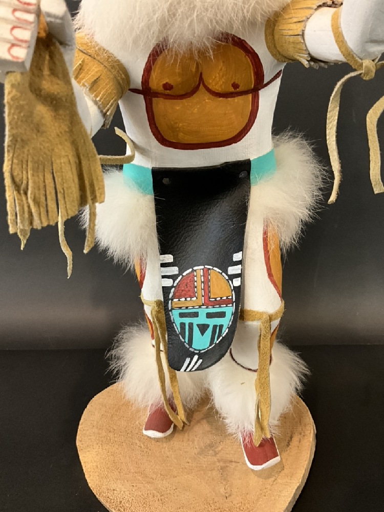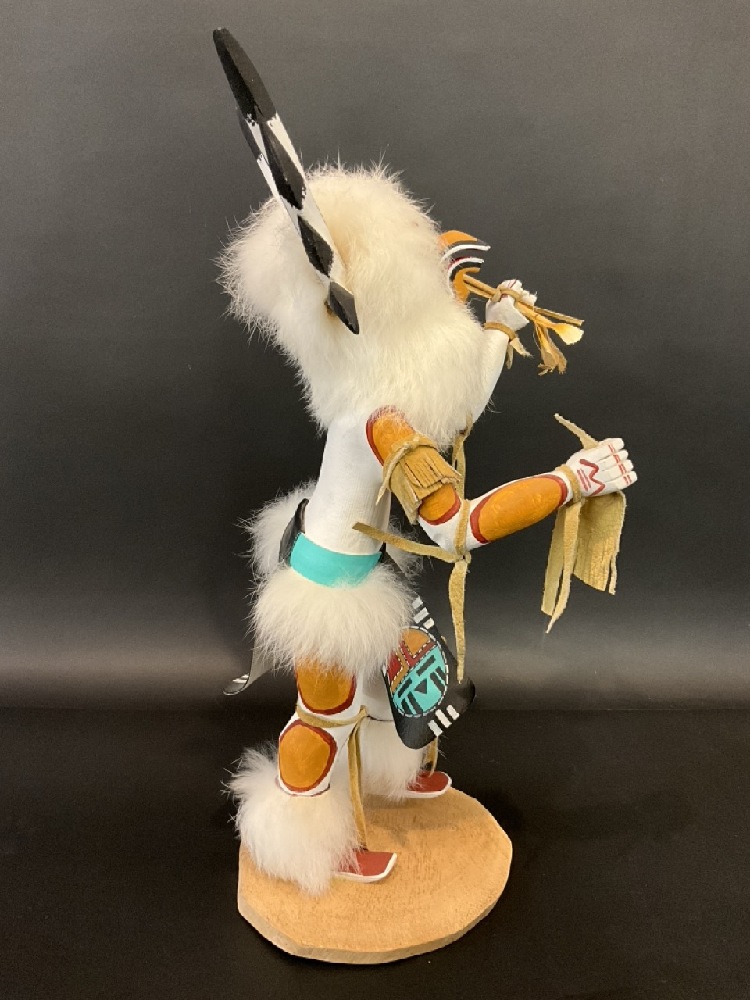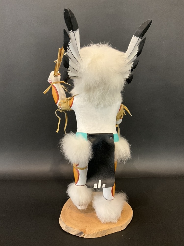 Signed Native American Navajo Hand Painted Carved Great Horned Owl Kachina Doll