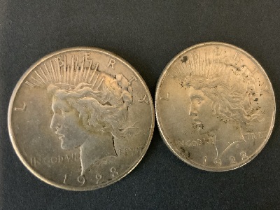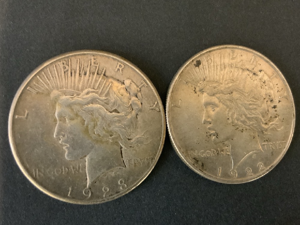 2pc U.S. Silver Peace Dollars 1922 & 1923.