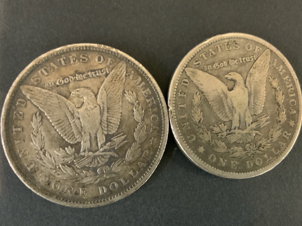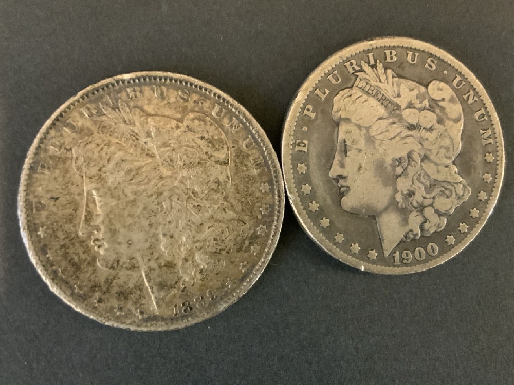 2 PC U.S. Morgan Silver Dollars 1889 & 1990.