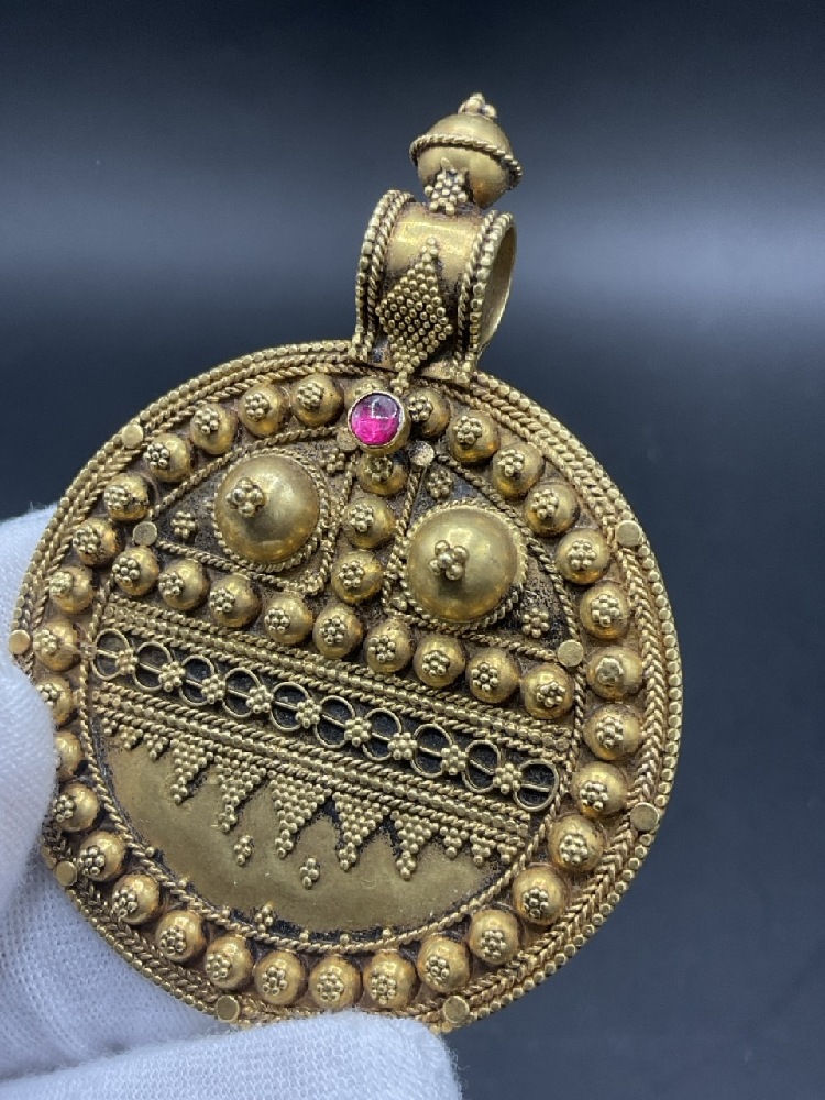 Indian Antique Jibi Amulet Pendant w/ Ruby 18k-22K Yellow Gold