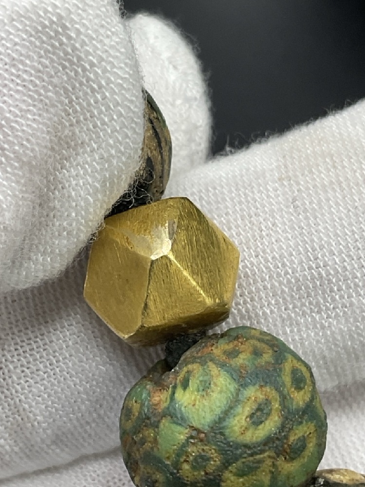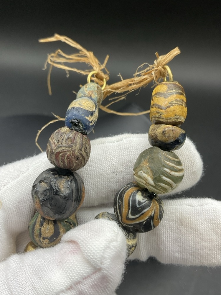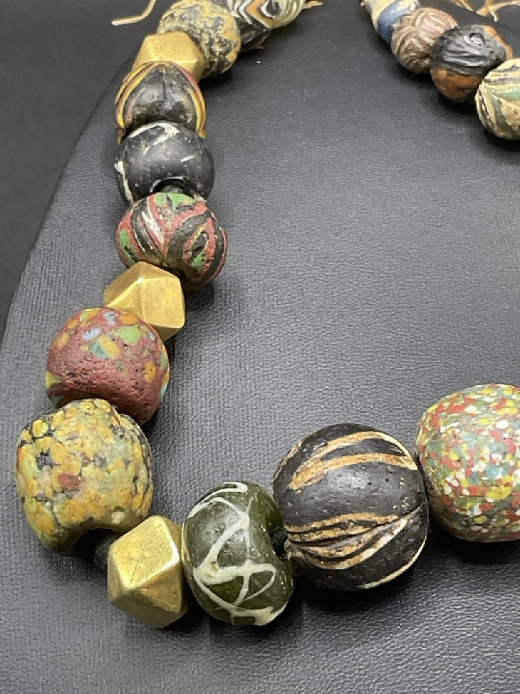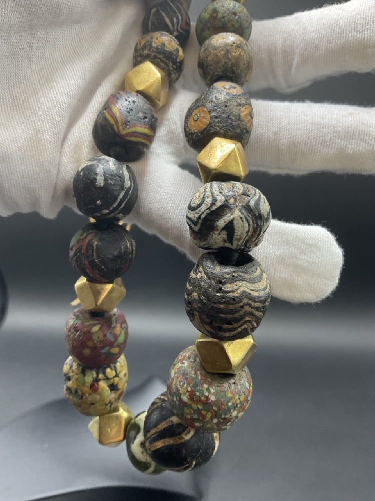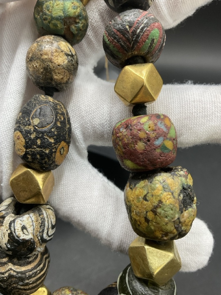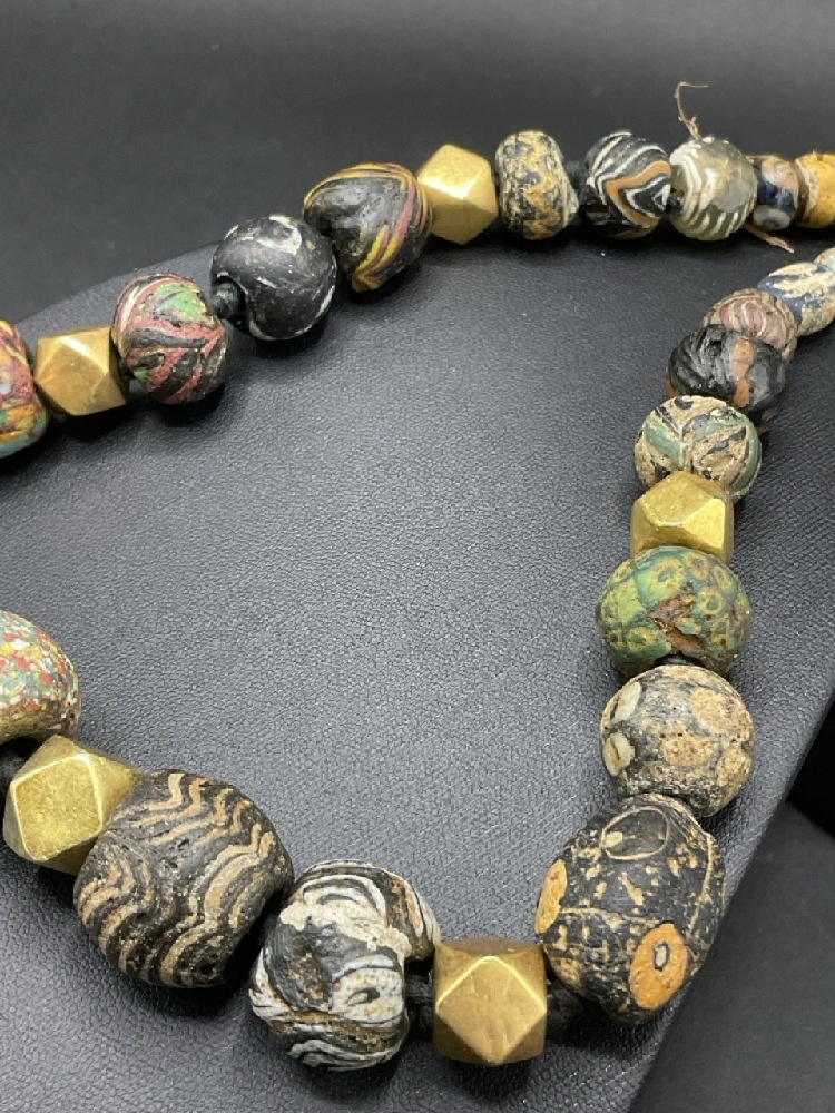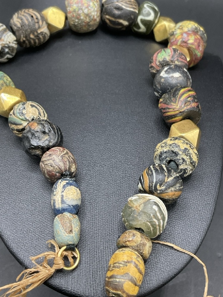A Strand of Ancient Roman Bead Necklace with 18K Gold Spacer Beads. Various sizes.
