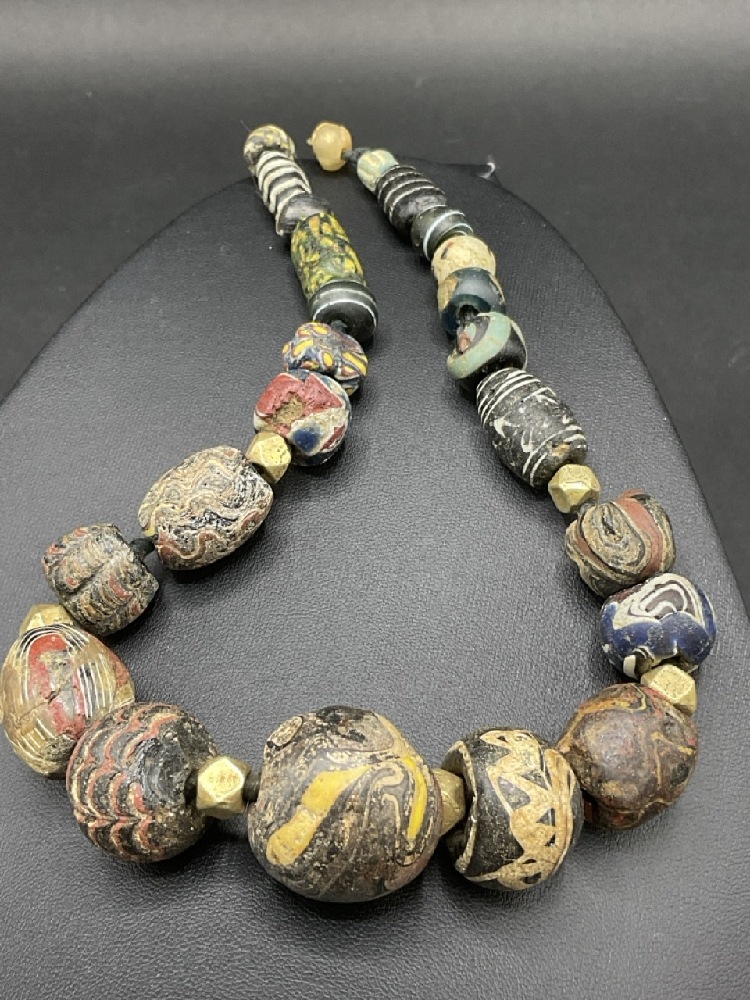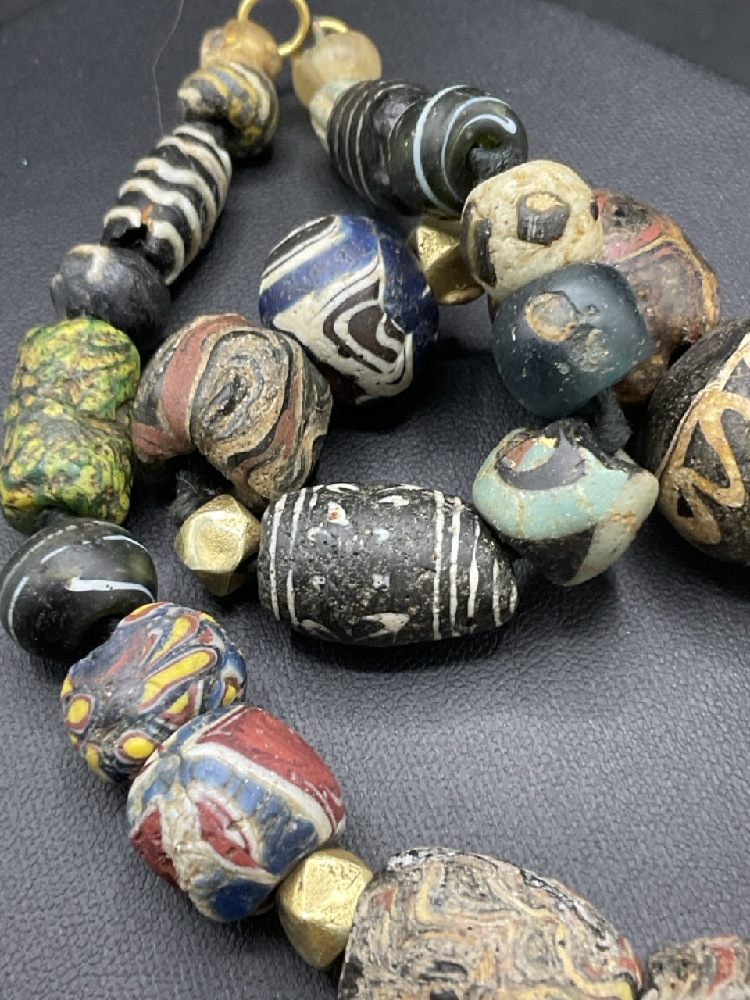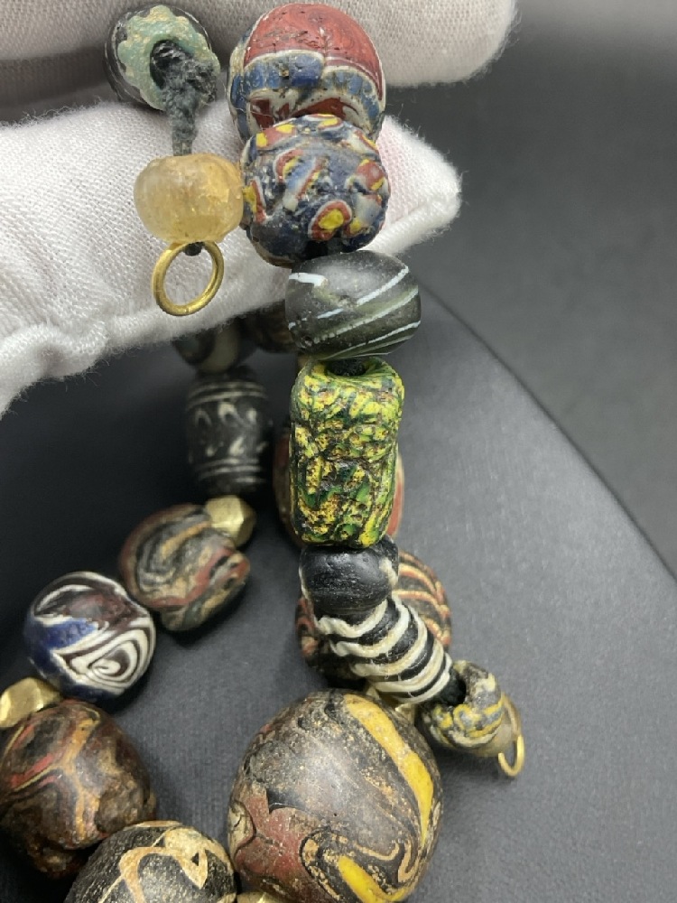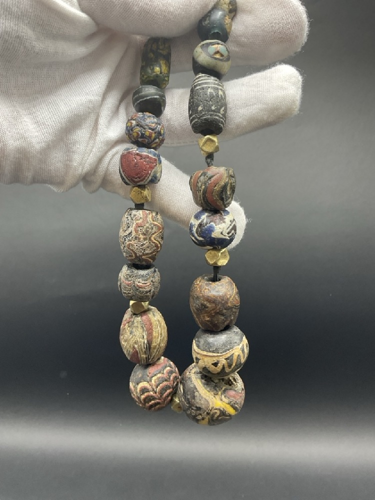 A Strand of Ancient Roman Glass Beads w/14K Gold Spacers.