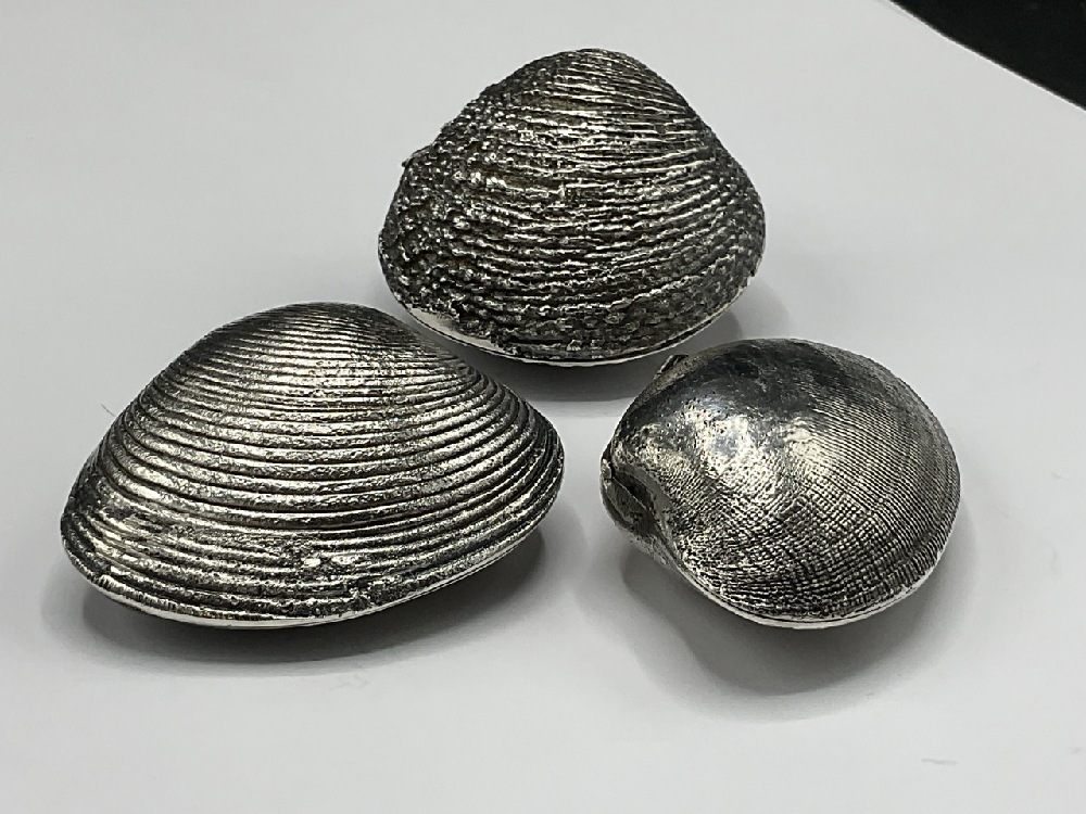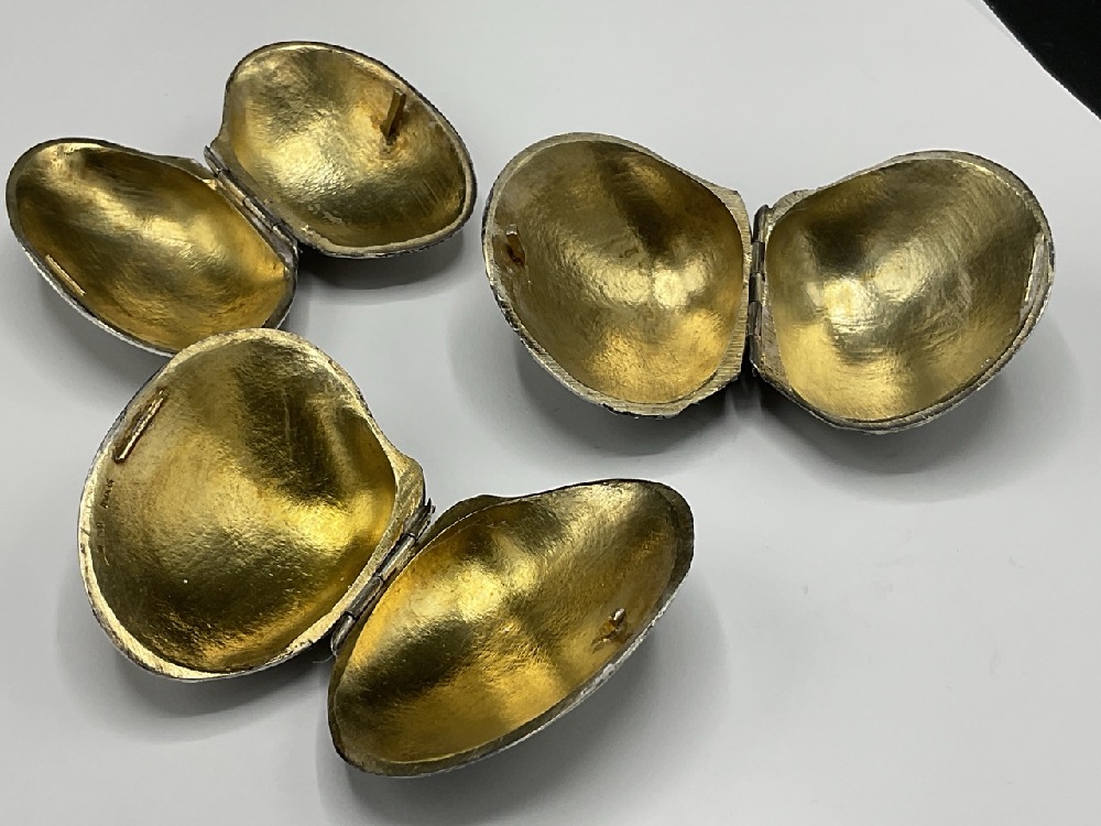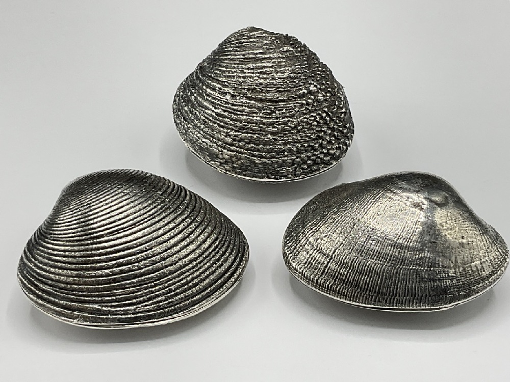 Luigi Sfriso .800 Silver Clamshells Trinket Boxes with Gold Wash Interior. Venice 20th century.