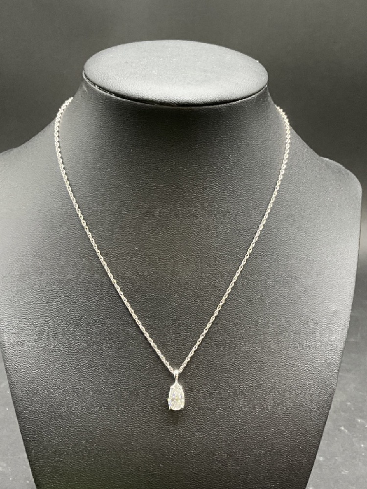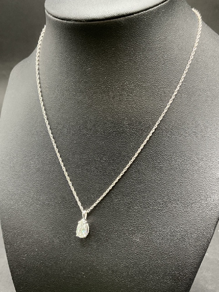 1.35ct. 14K White Gold Pear Shaped Diamond Solitaire Pendant Necklace. Clarity 12 and Color 1. 10.17mm x 5.78 mm with 15" Chain