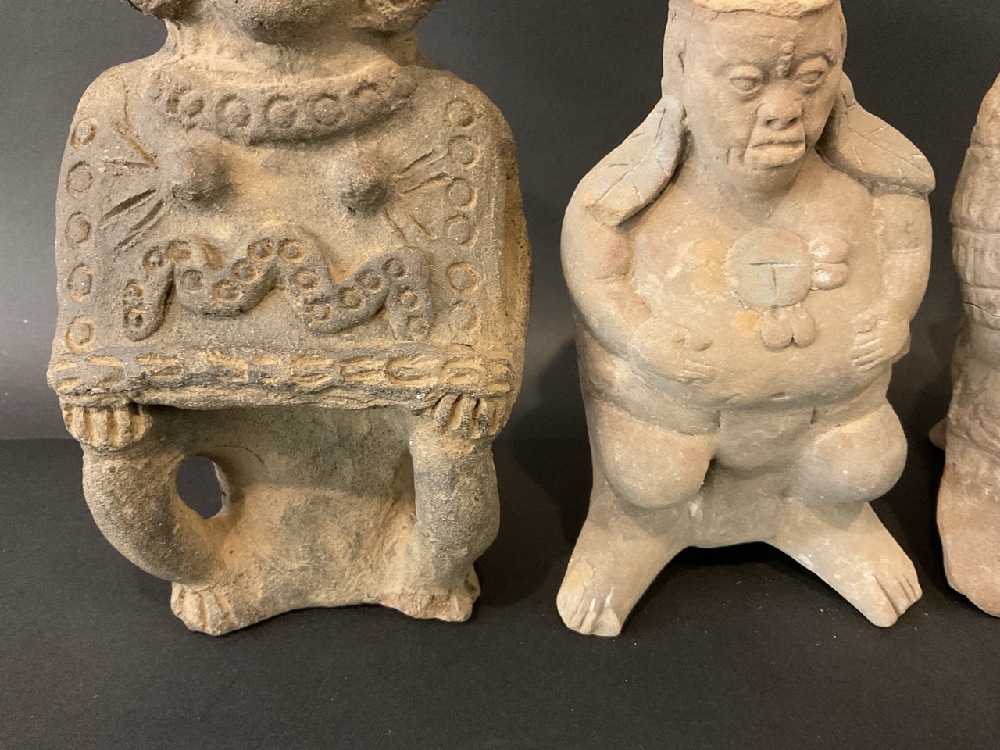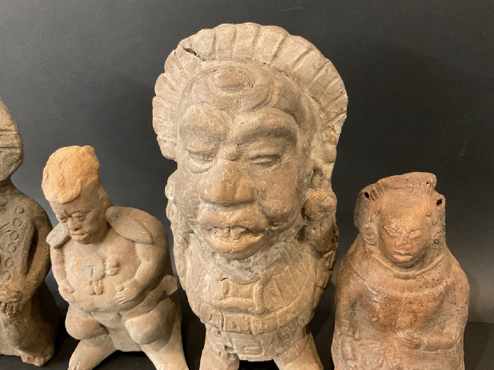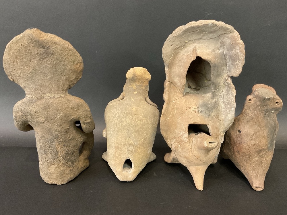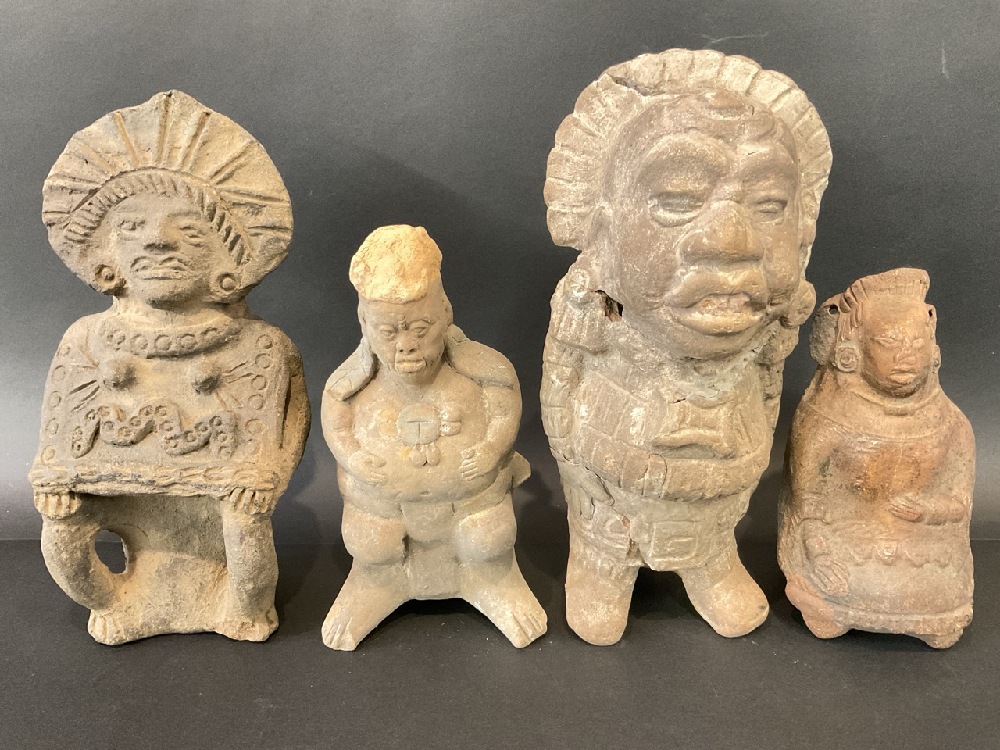 (4) South American Terracotta and Stone Statues. Site finds noted at base. Please see photograph preview.