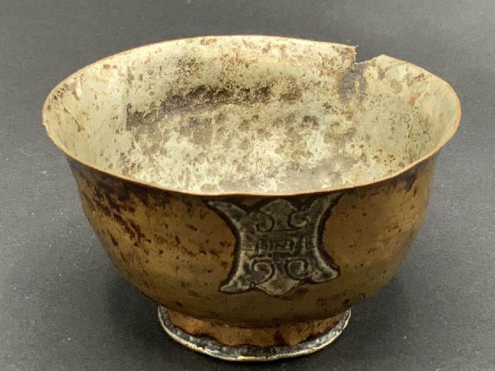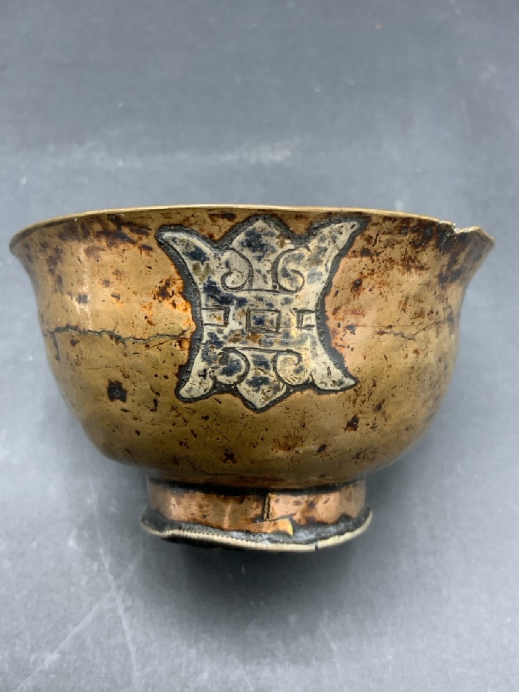 Antique Brass and Silver Mounted Wine Tasting or Ceremonial Cup.