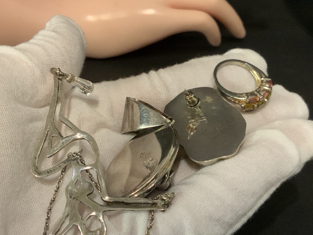 Nine (9) Piece Assorted Sterling Silver Jewelry Group Lot.