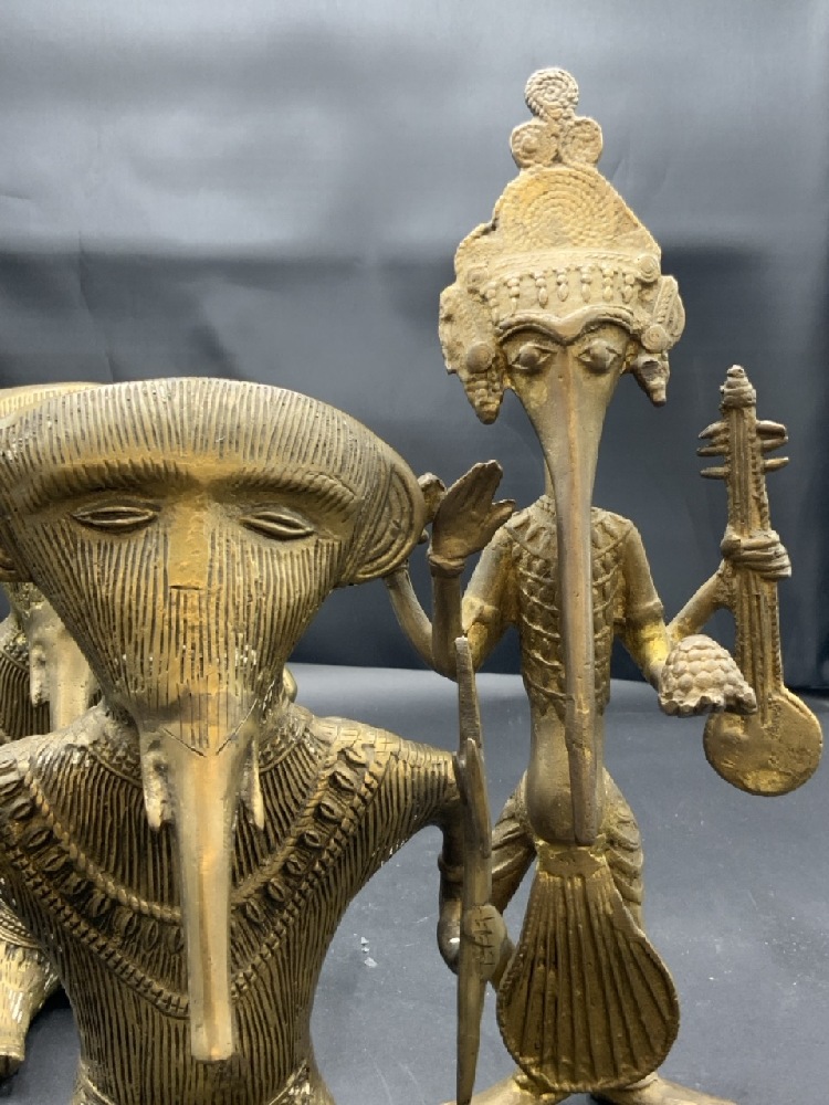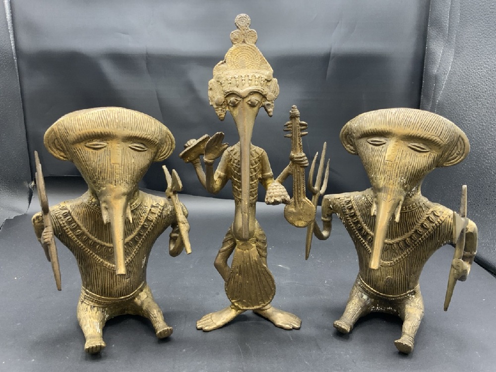 Three (3) Pc Brass Indian Tribal Art, Lord Ganesha & Elephant Man.