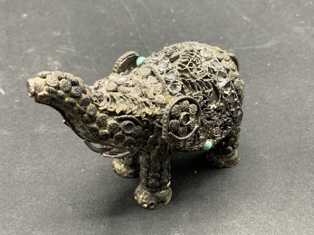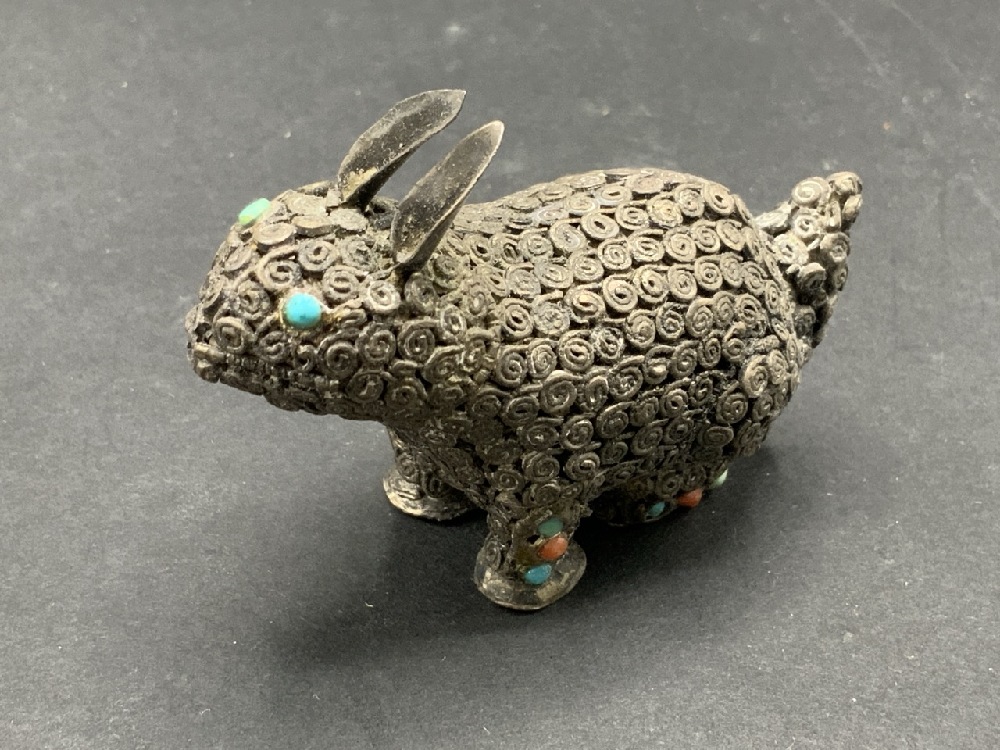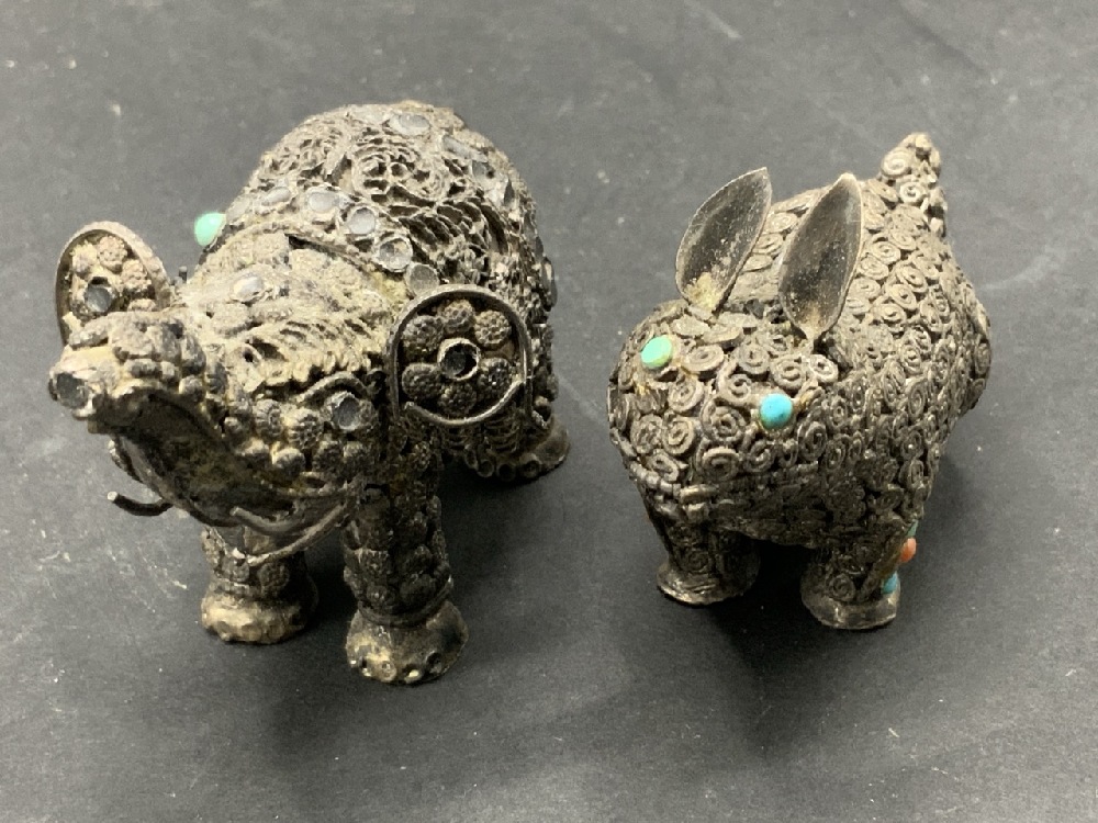 Six (6) Piece Estate Found Metal Objects Grouping. Animals, trinket boxes etc.