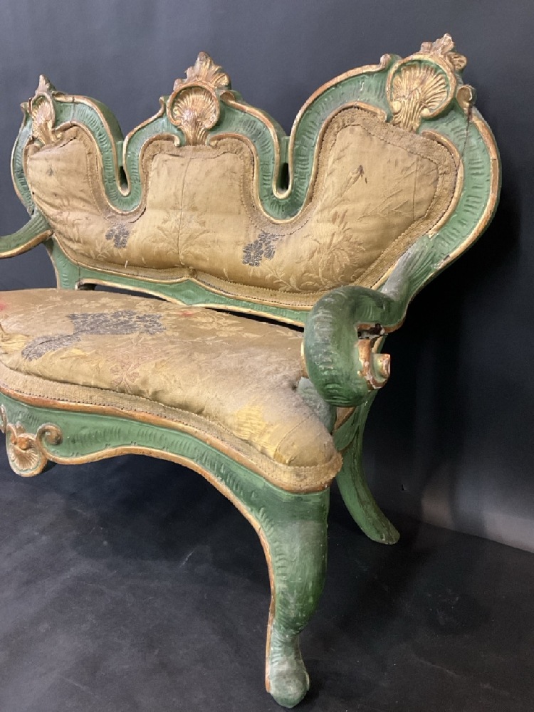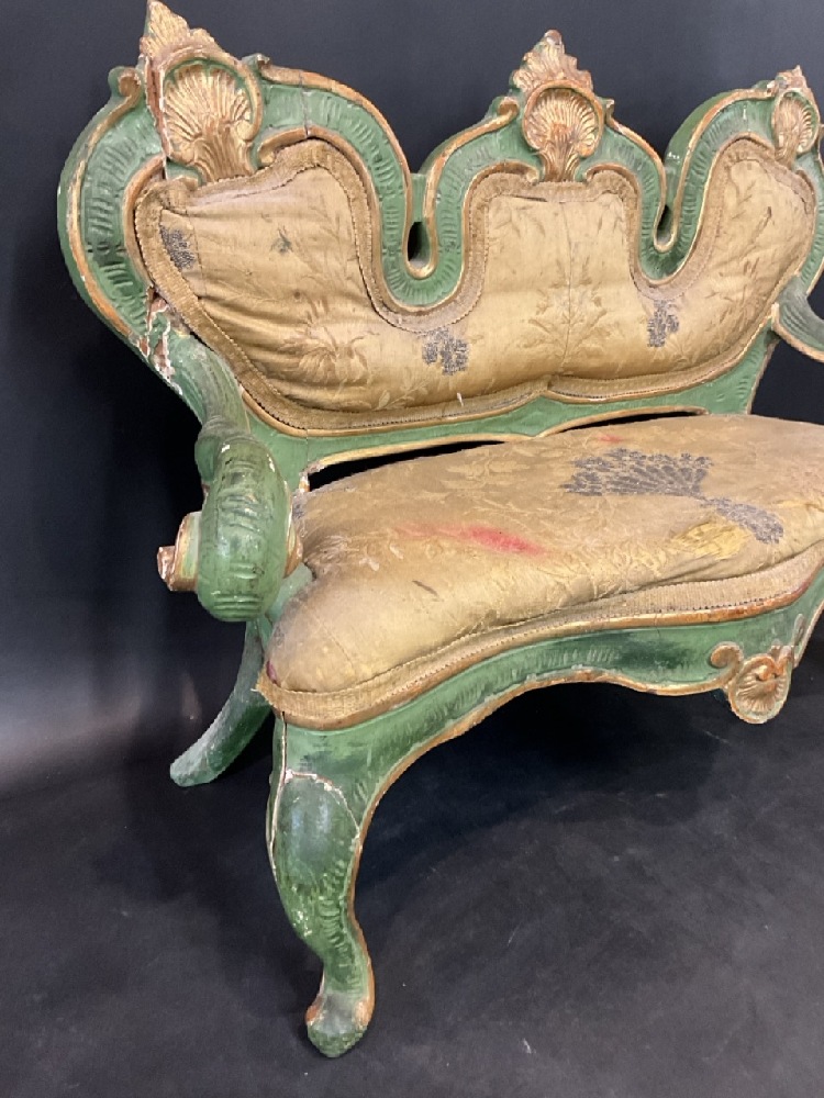 19th C. Italian Rococo Miniature Settee. Fashion Doll Size.
