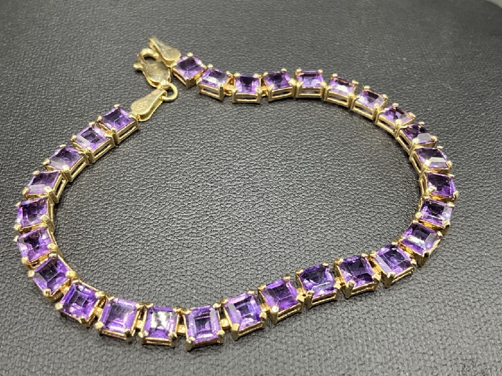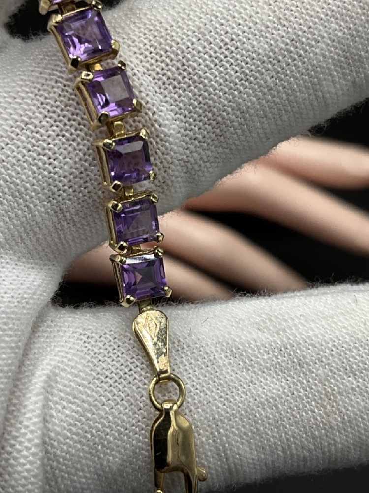 14K Yellow Gold Amethyst Gemstone Bracelet. 7" Length. Total Weight:6.8 grams