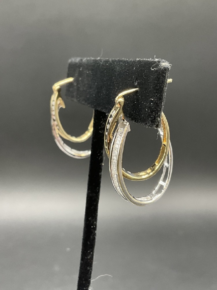 14K White and Gold Diamond Hoop Earrings. 1.5ct Diamond Weight. TW:6.88 grams