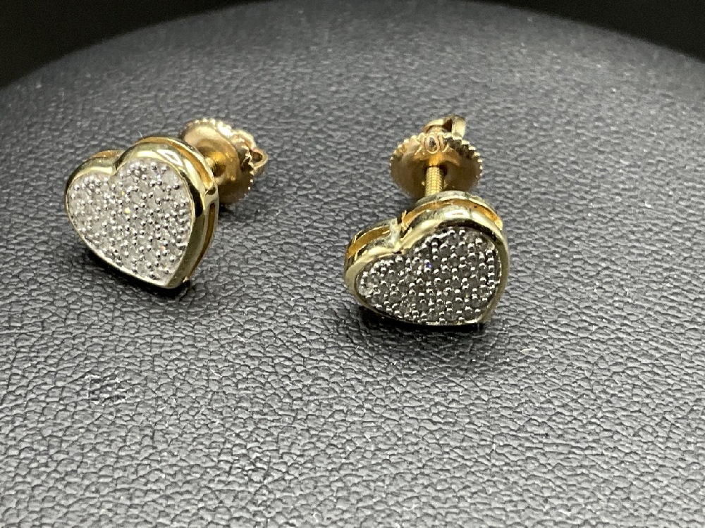 A Pair of Diamond Heart Shape Cluster Earrings. .38ct. Total Weight: 2.03 grams\