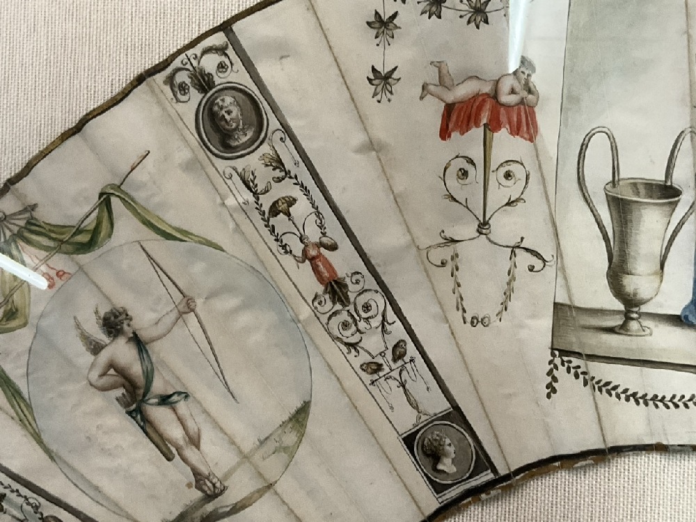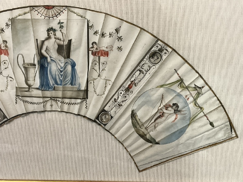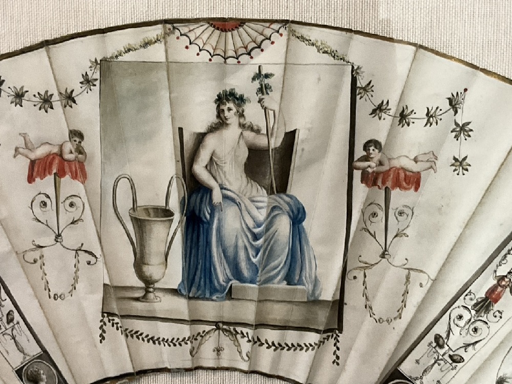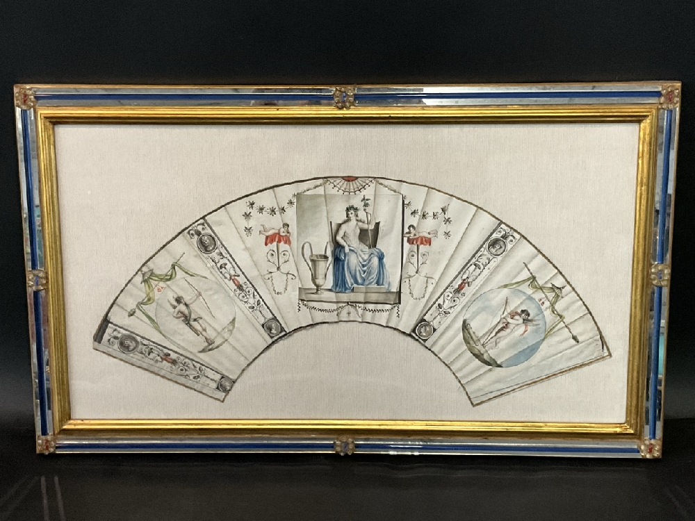 Italian Hand Painted Antique Fan Paper Framed. Goddesses.