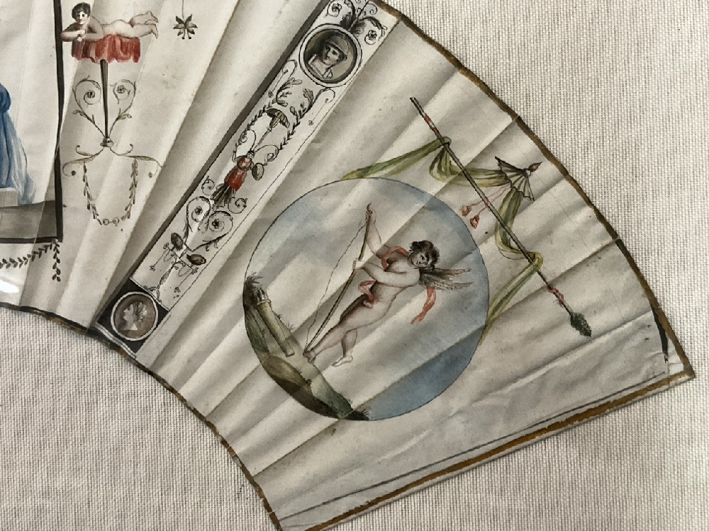 18th/19th c. Italian Hand Painted Watercolor Fan Paper Framed.