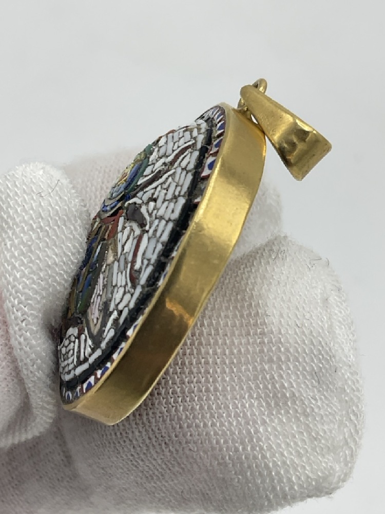 18k Scarab Pendant Micromosaic Jewelry Pendant.