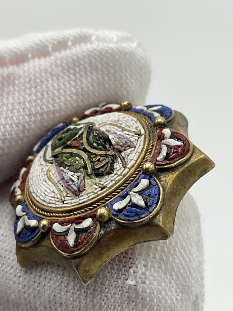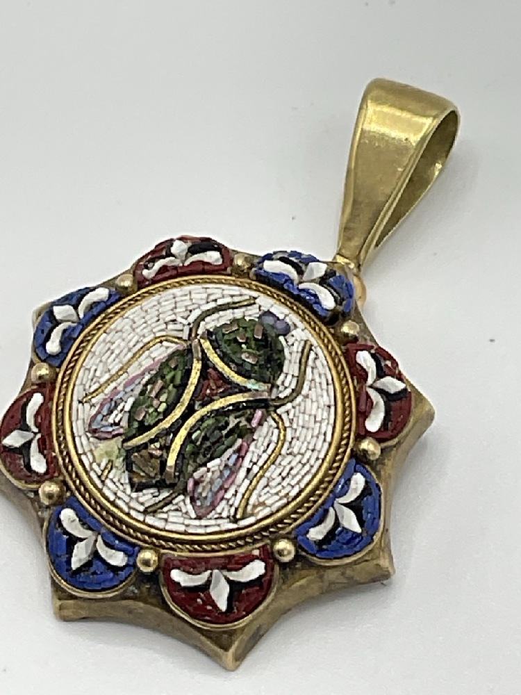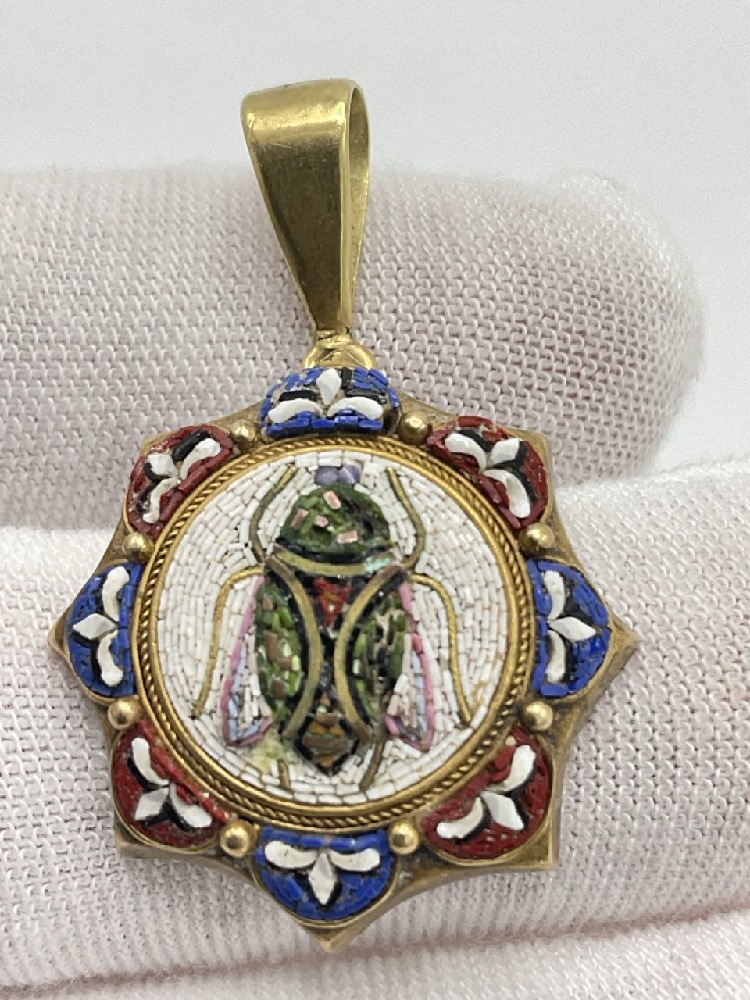 18k Gold Micromosaic Scarab Jewelry Pendant.