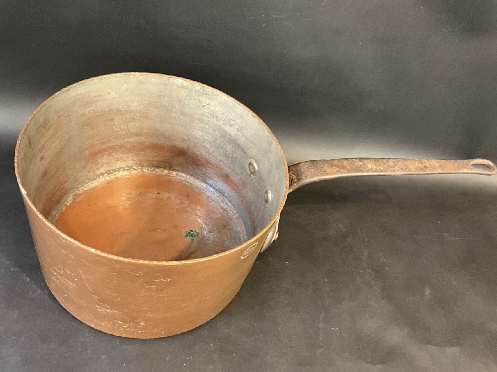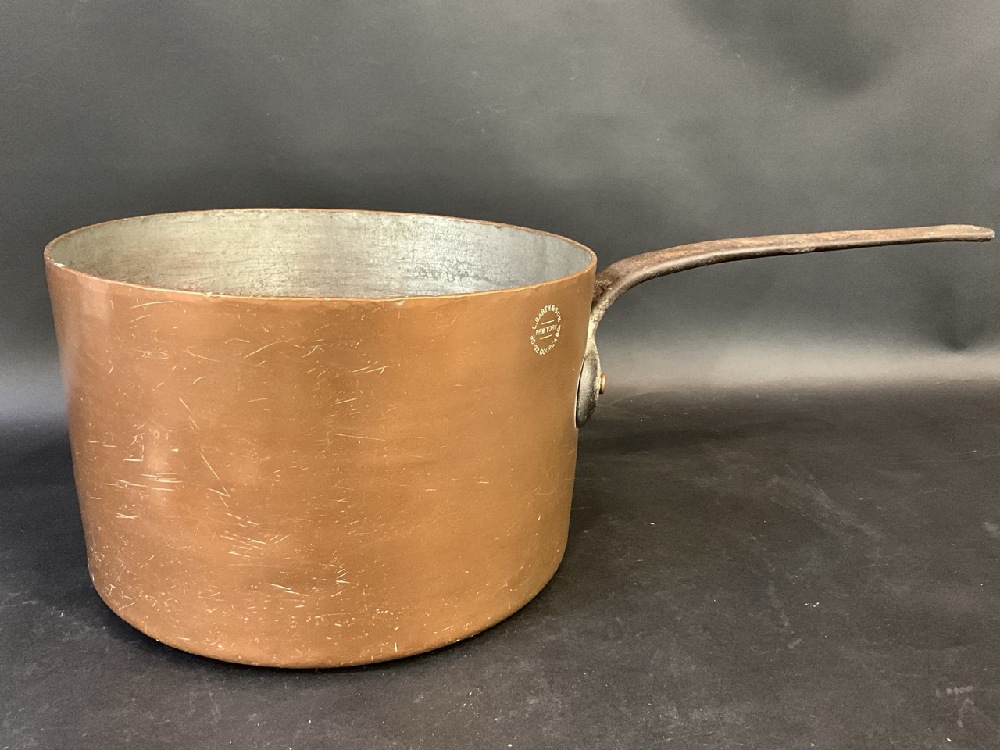 L. Barth & Son New York 30-32 Copper Sq. 12 Qt Copper Pot w/ Cast Iron Handle.