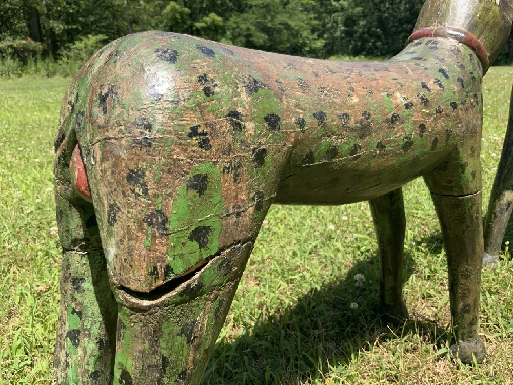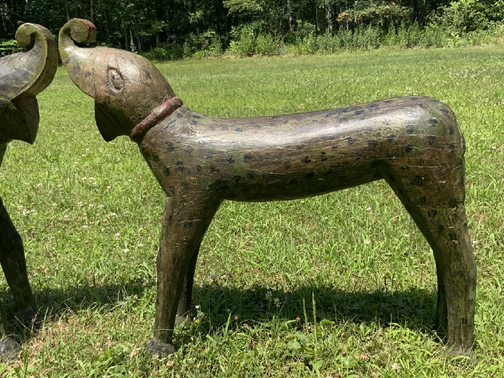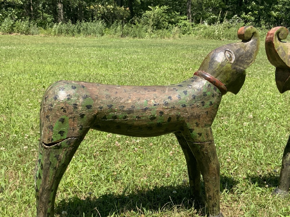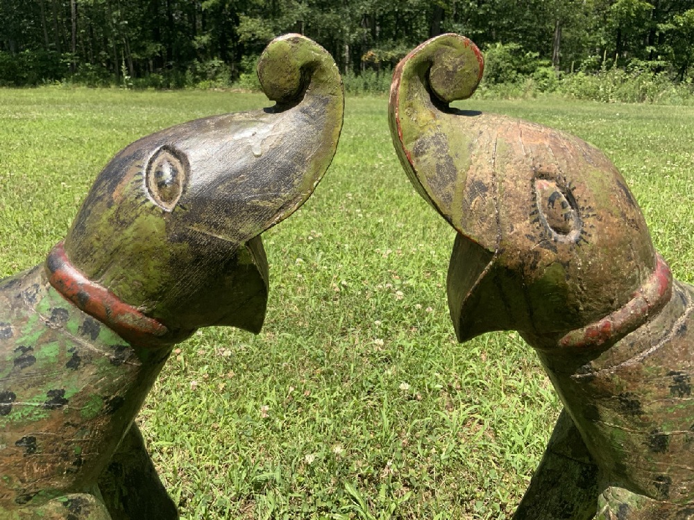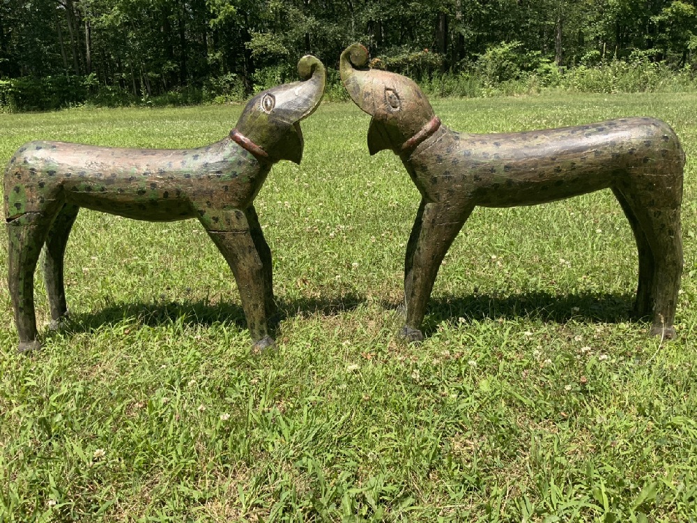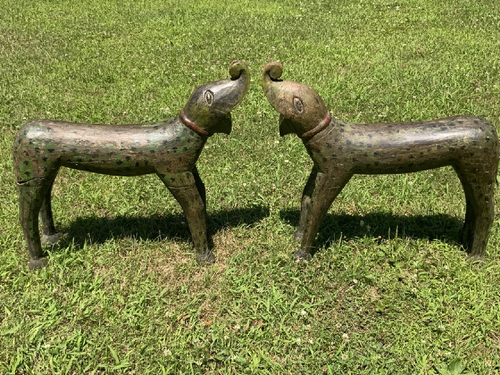 Two (2) Indian Polychrome Painted Indian Elephant Statues. One leg has been repaired. Please see photograph preview.