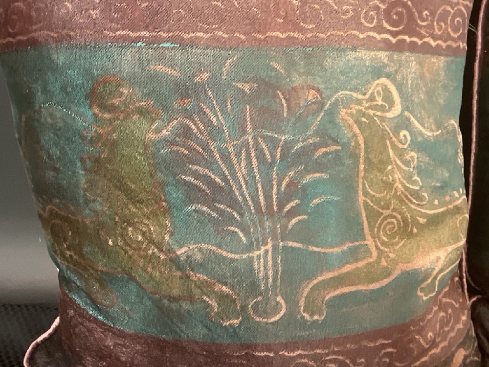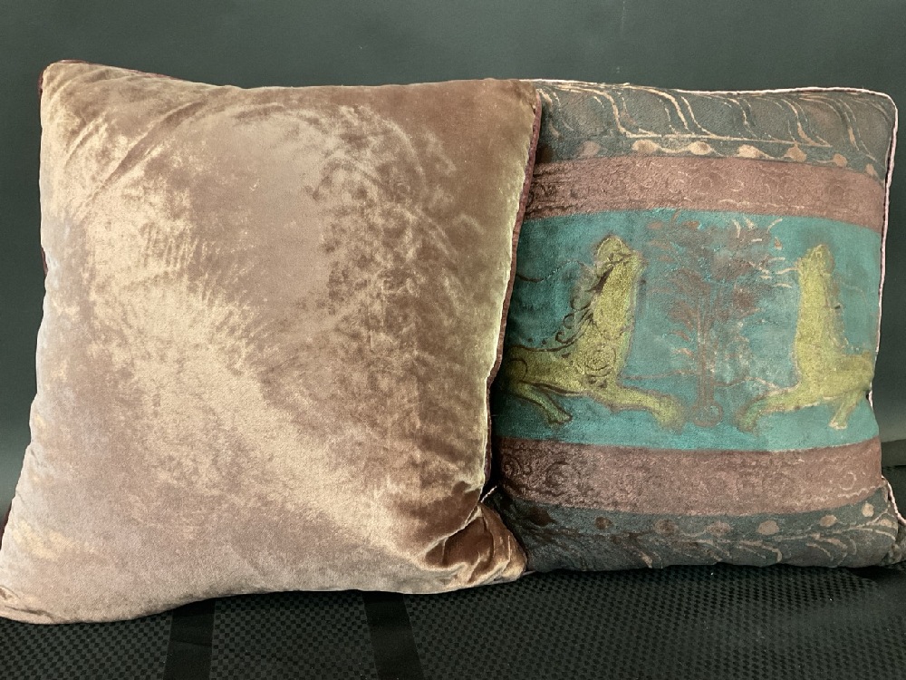 Italian Silk Square Hand Painted Sofa Throw Pillows.