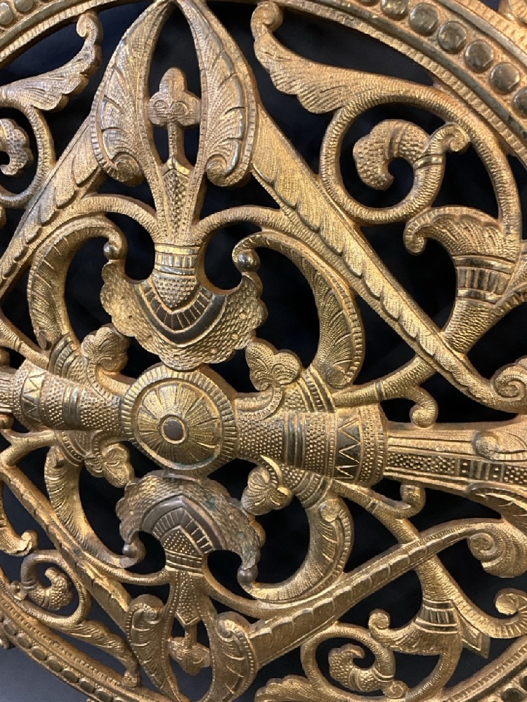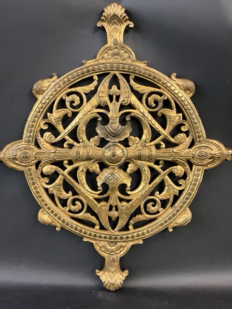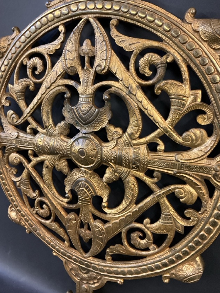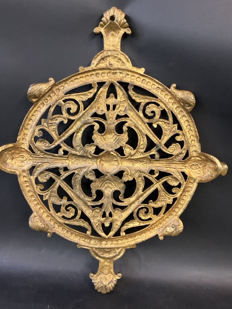 Antique architectural bronze or brass medallion. Unknown origin. Late 19th or Early 20th century.
