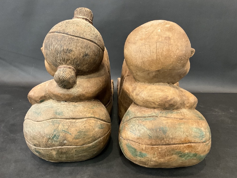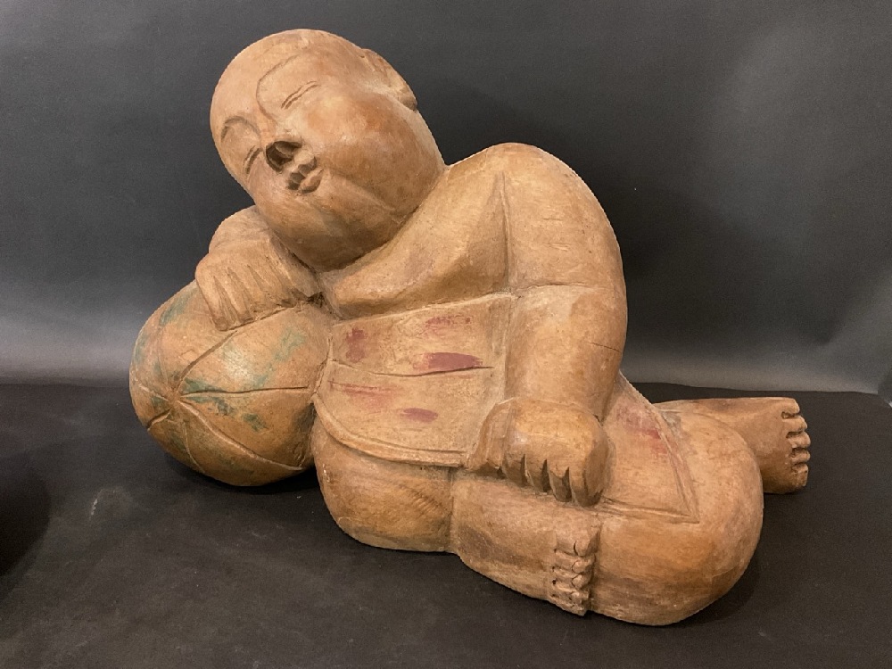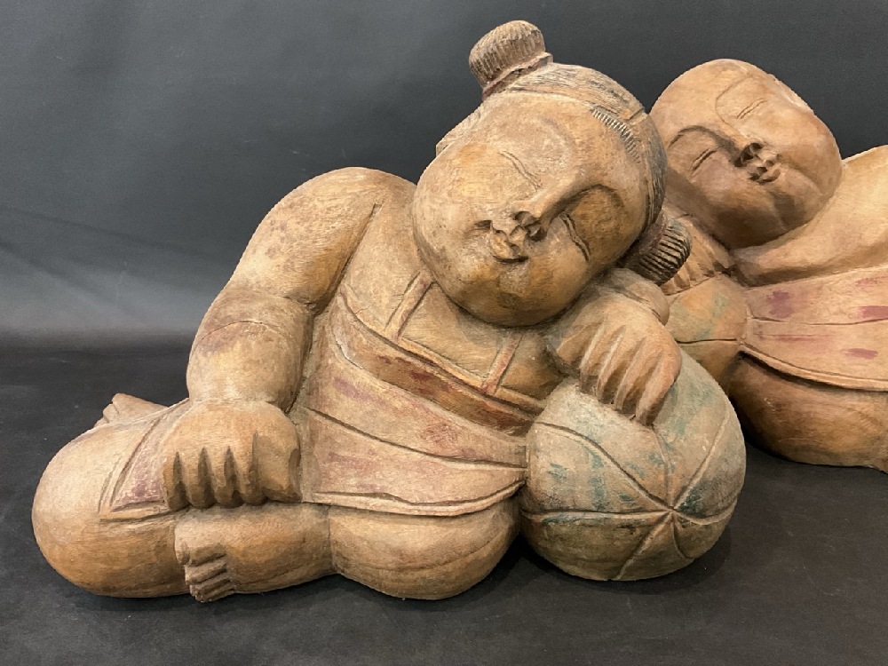 Vintage Oriental Carved Sleeping Children Statues
