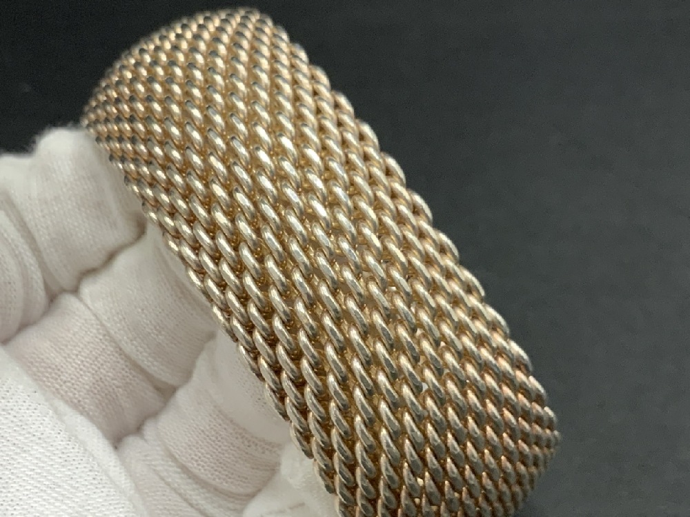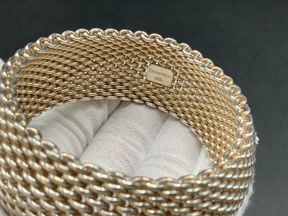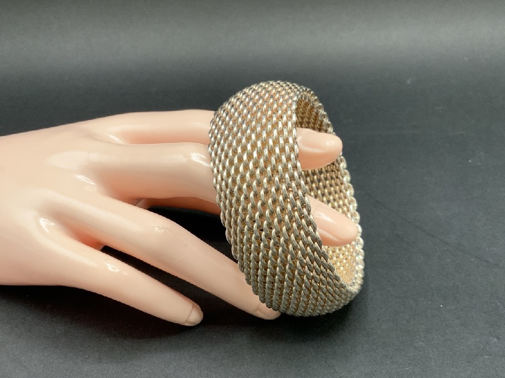 Tiffany & Co. Somerset Sterling Silver Wide Mesh Bangle Bracelet.