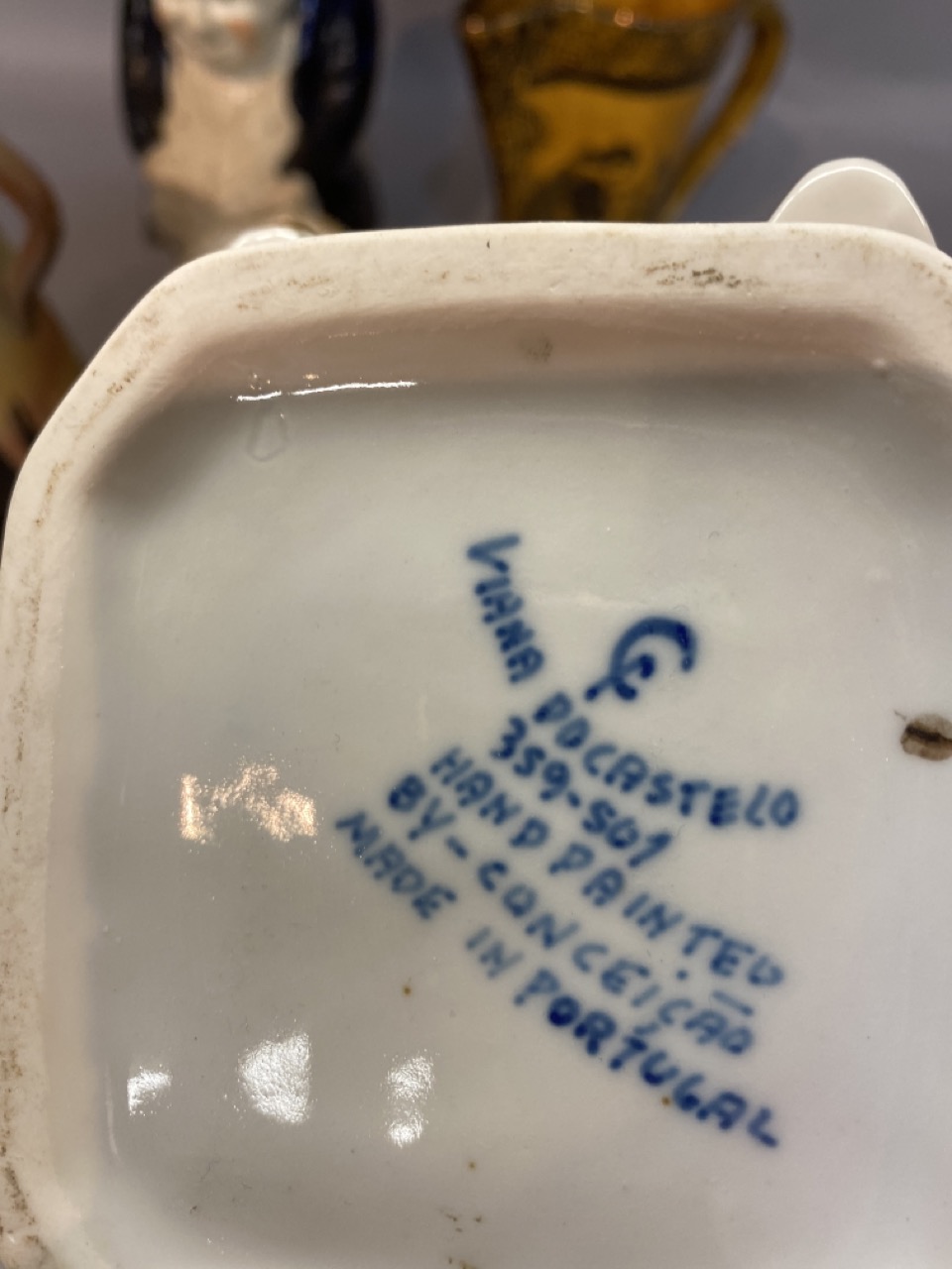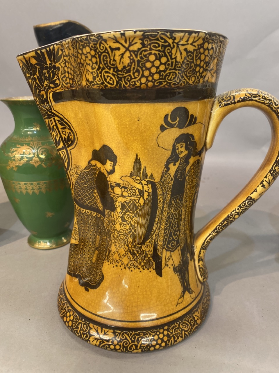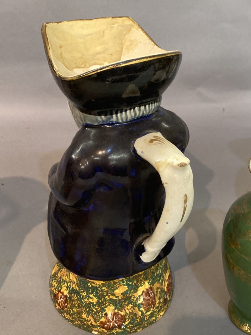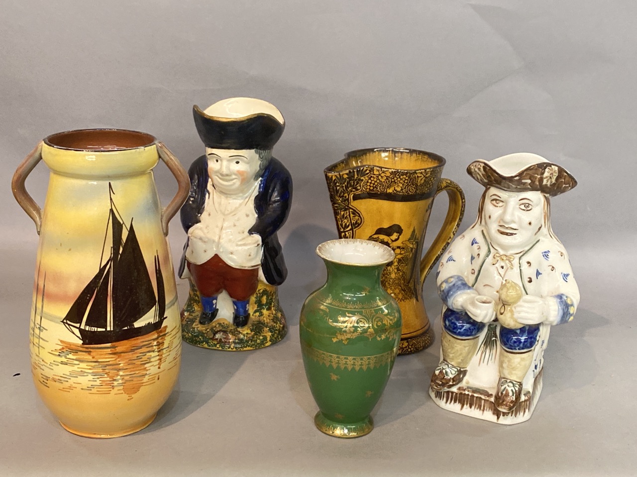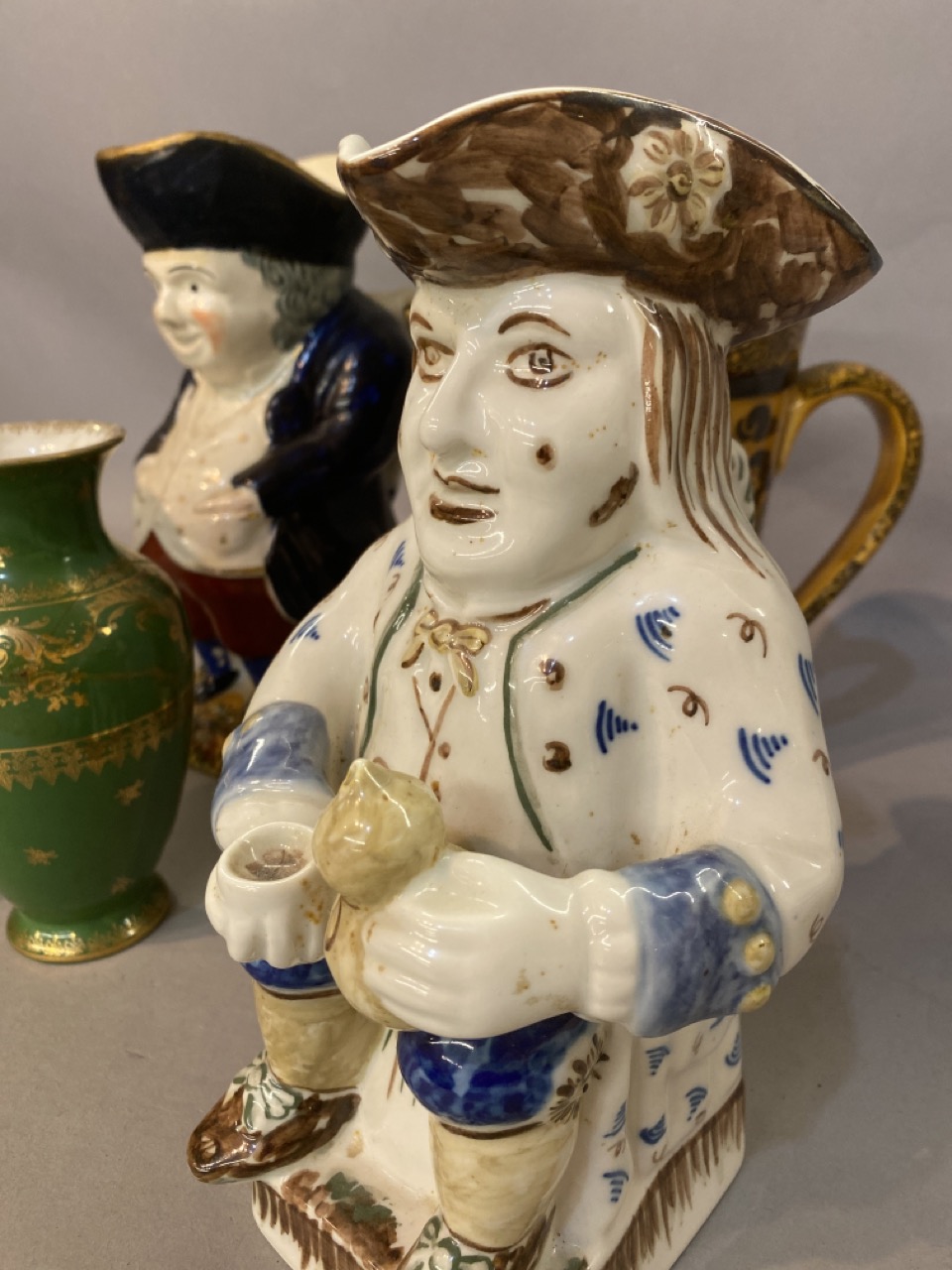 A grouping of English Toby mugs and vases including Doulton Burslem.