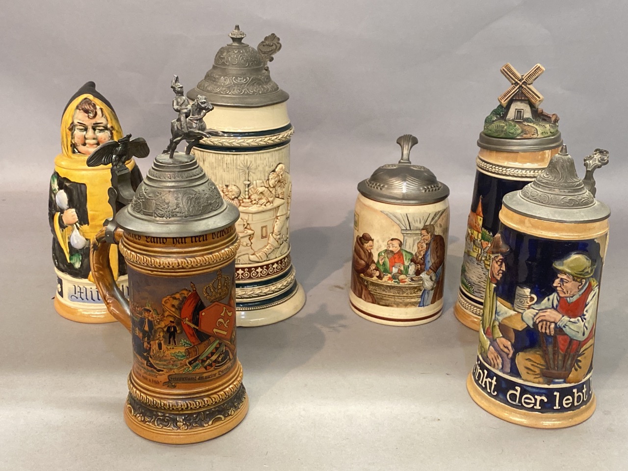 Six (6) piece German steins lot.