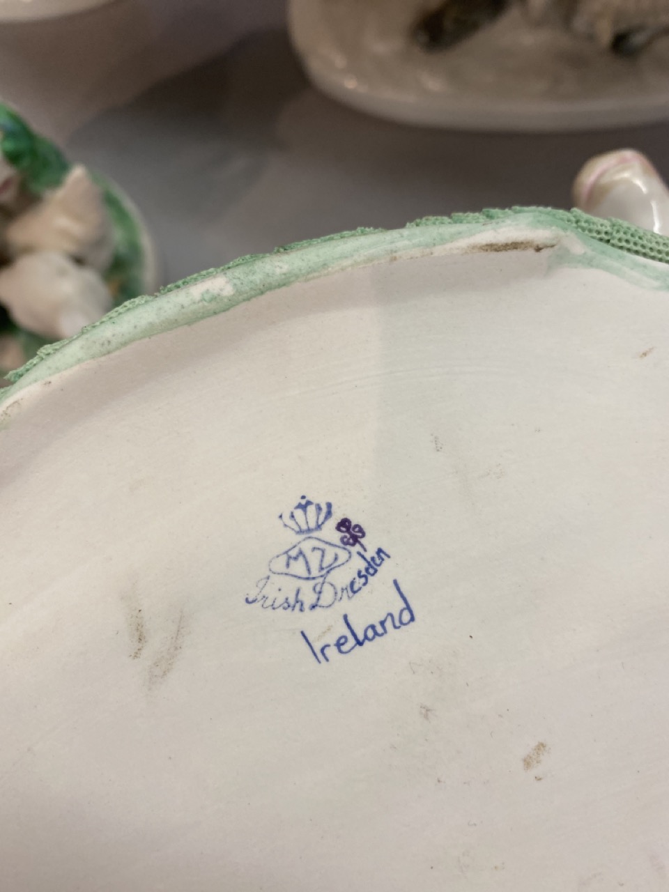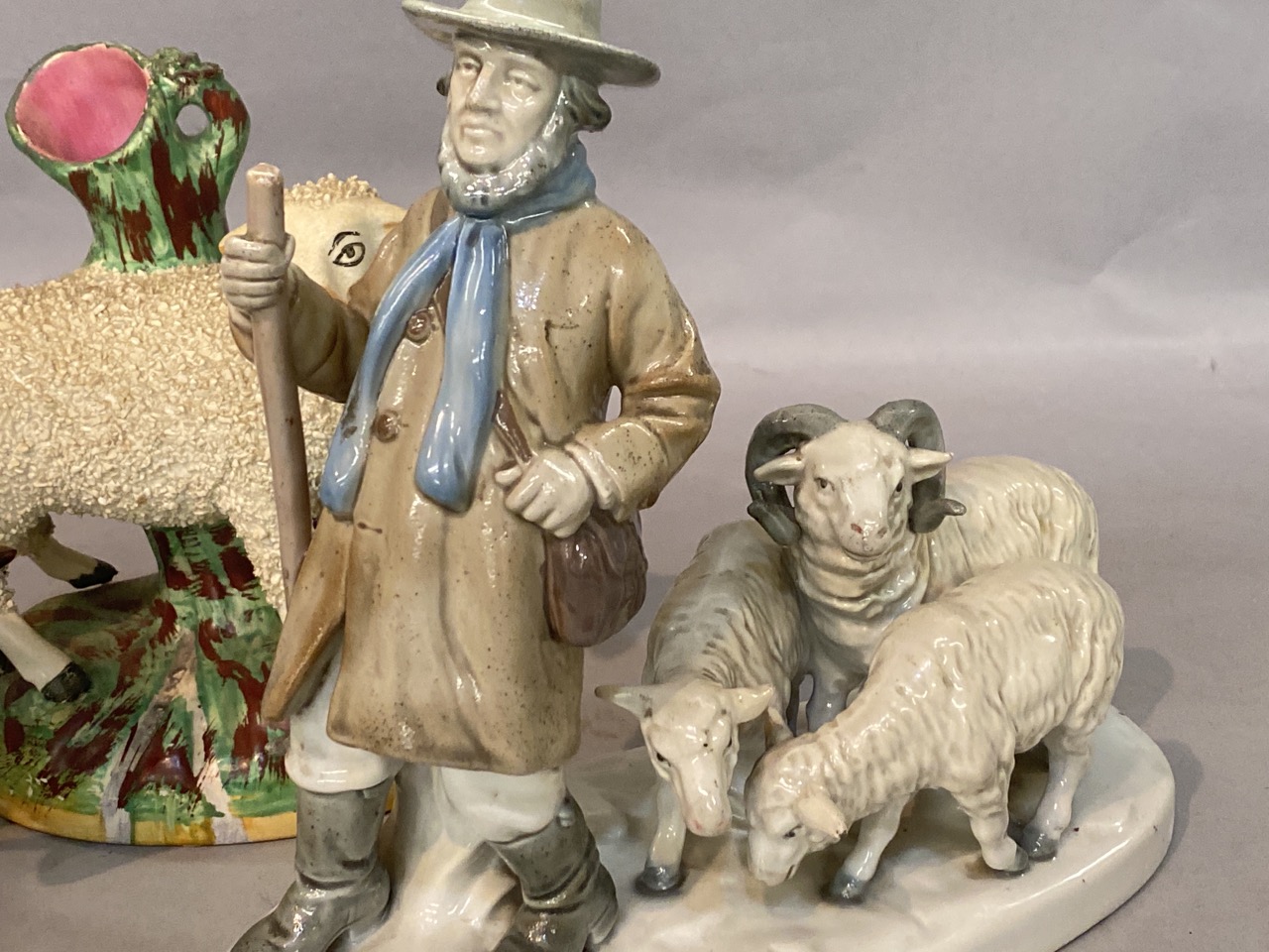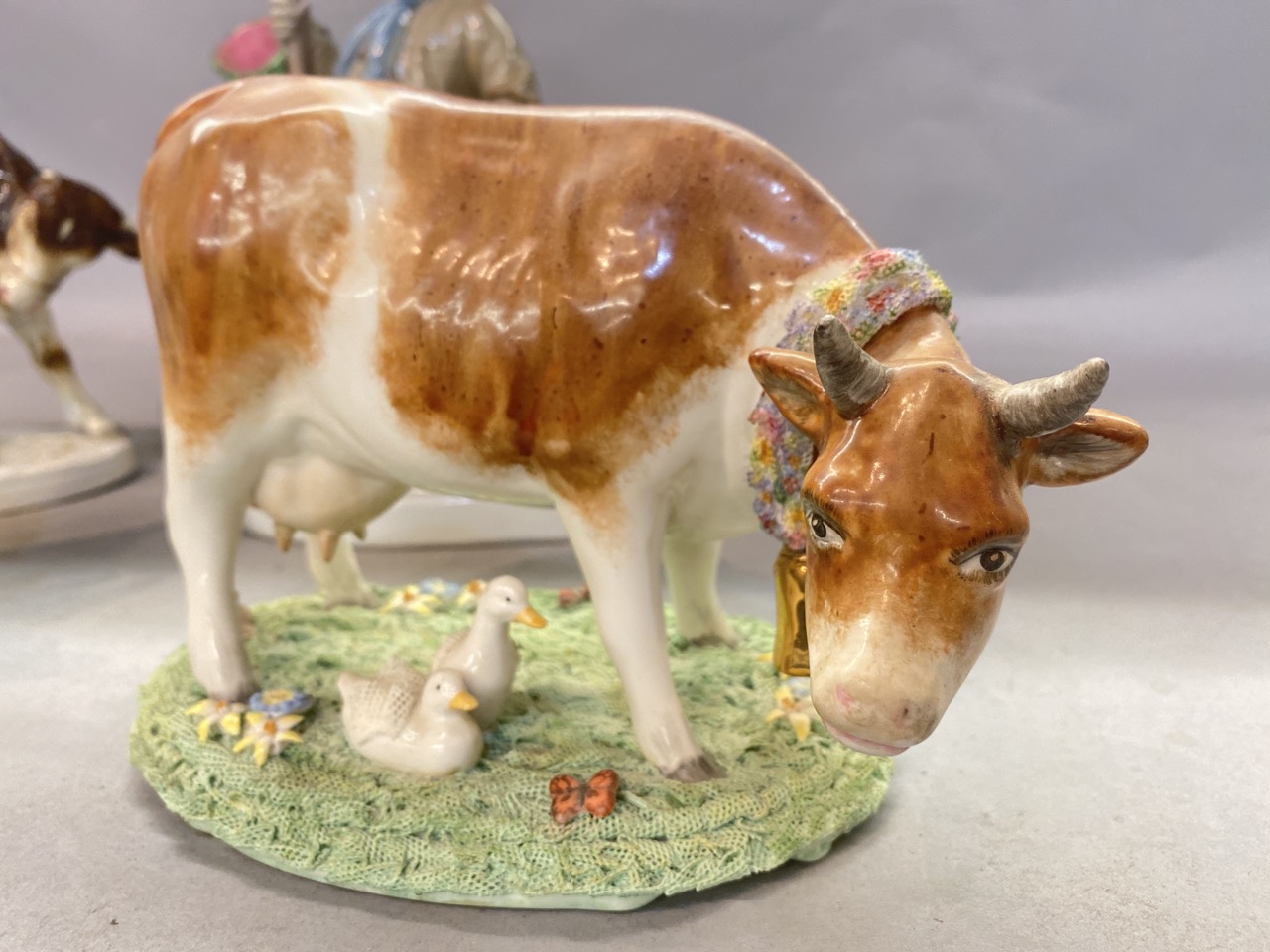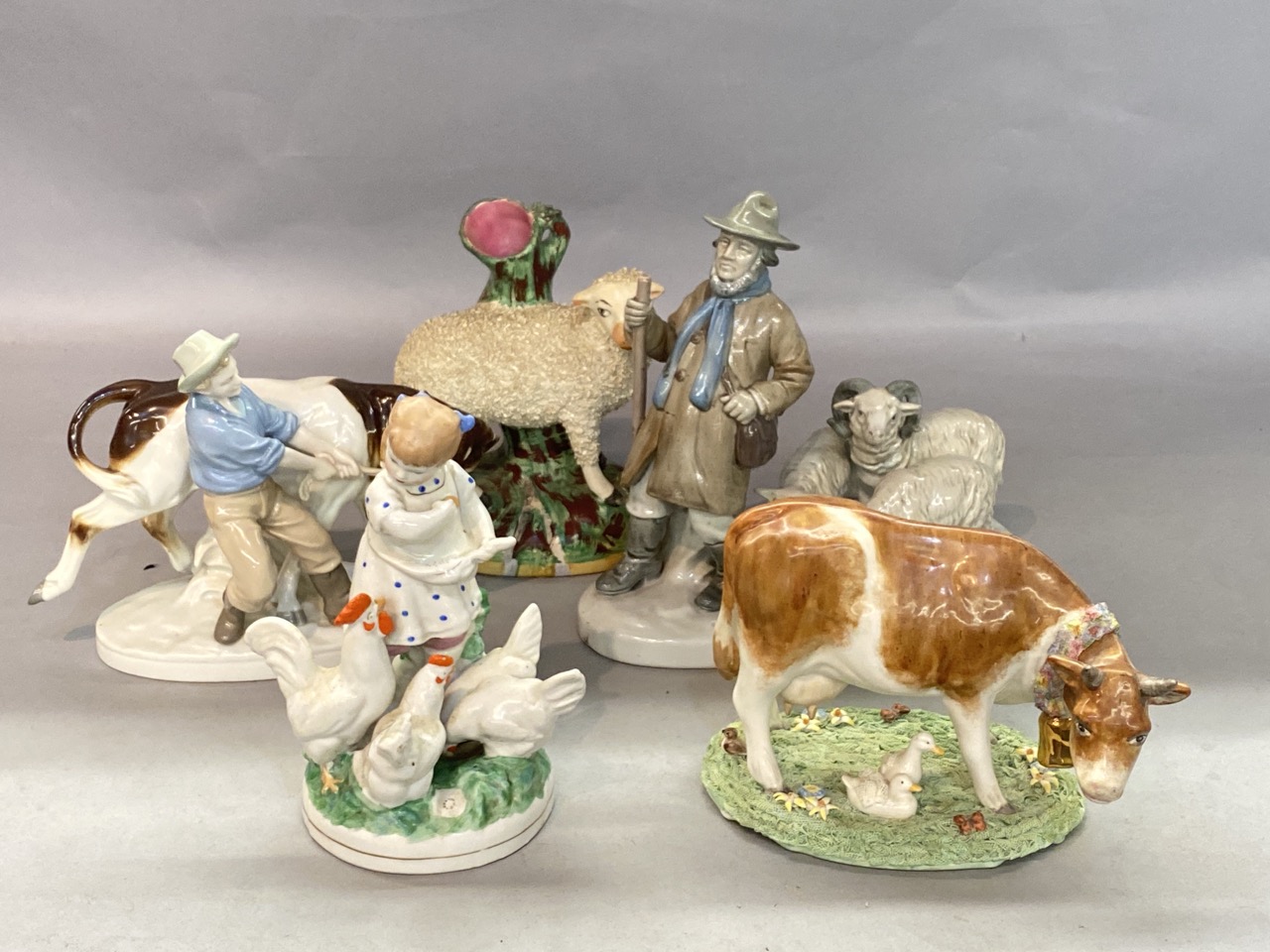 Five (5) farm animal figurines lot. Irish Dresden, Staffordshire etc.
