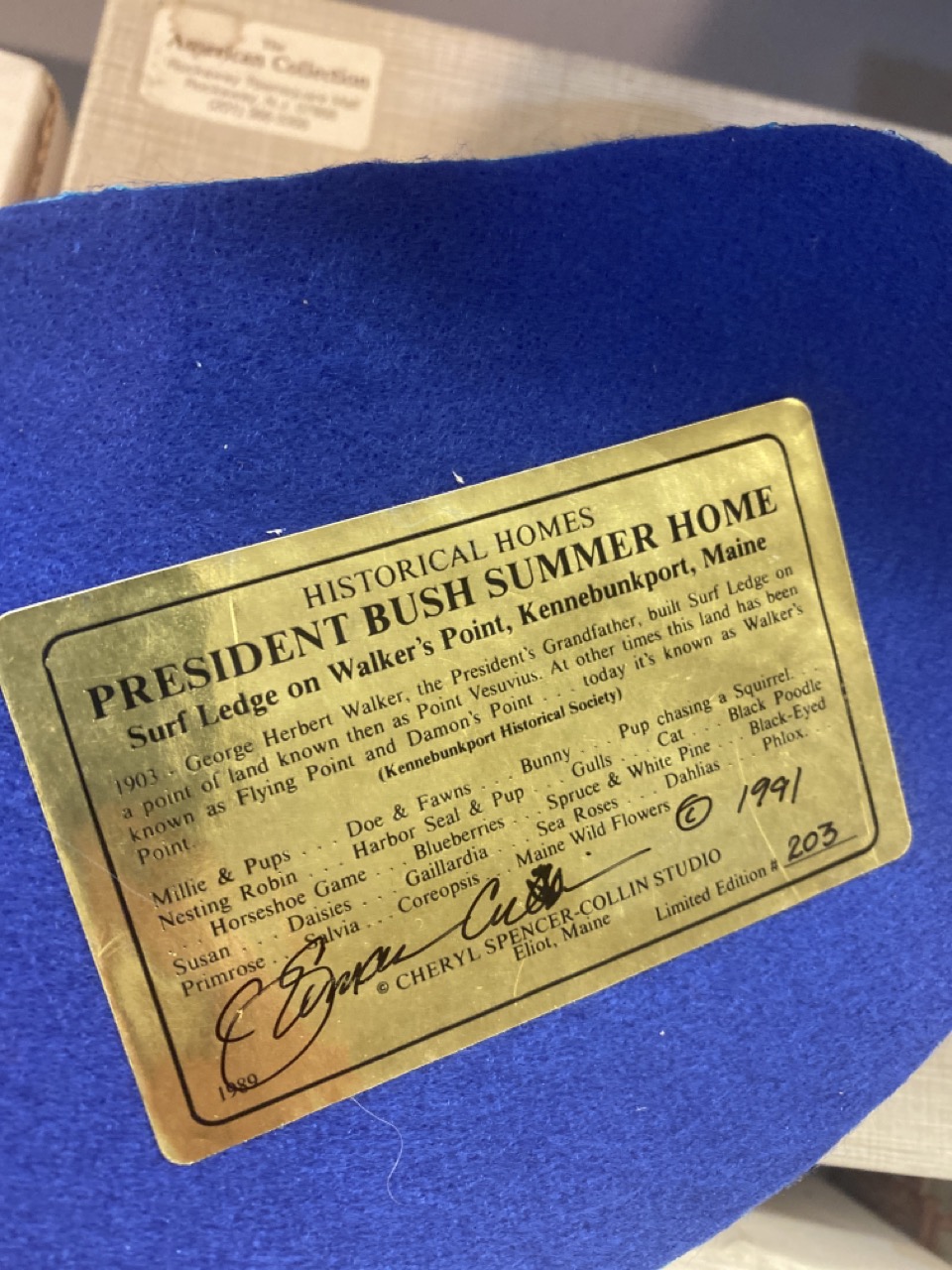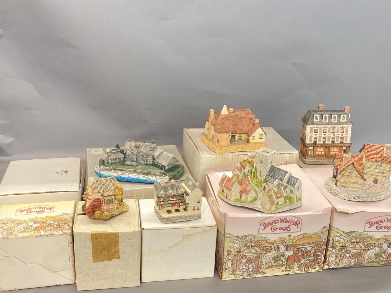 Nine (9) piece. David Winter Cottages, President Bush Summer home by Cheryl Spencer-Collin Studio etc.