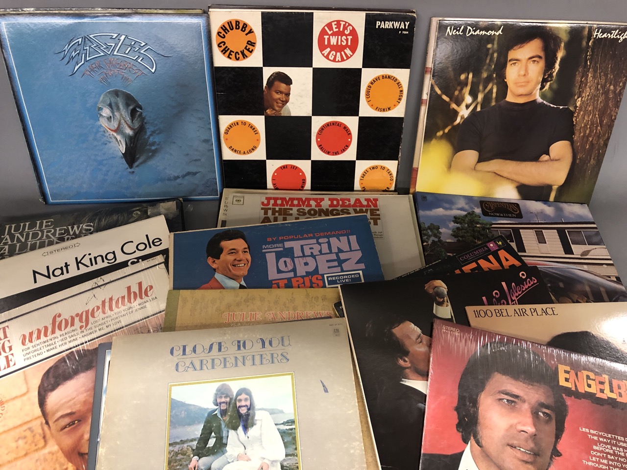 Collection of various artists LP record lot. Eagles, Chubby Checker, Neil diamond, Julio Iglesias.