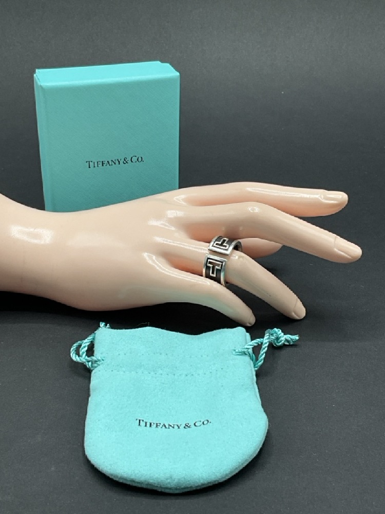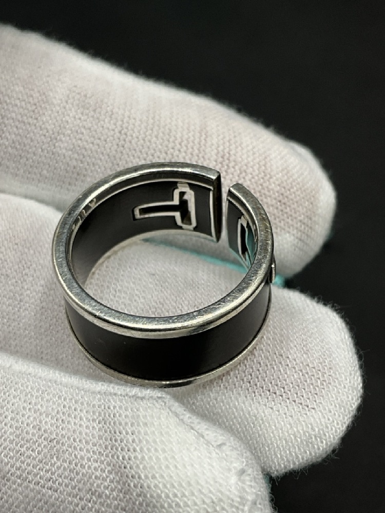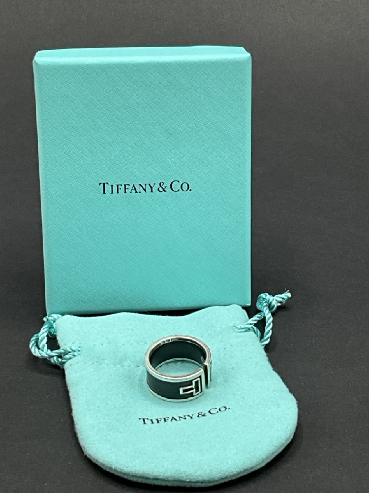 Tiffany & Co. "T" Band Black Ceramic and Sterling Silver Ring.