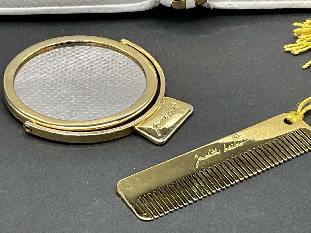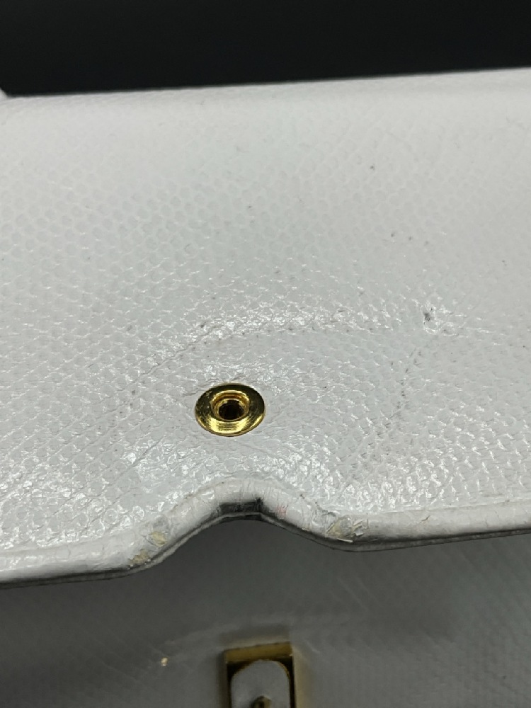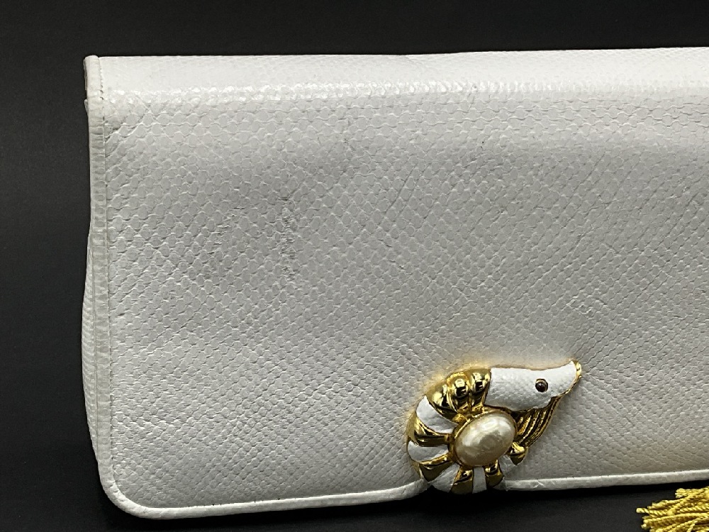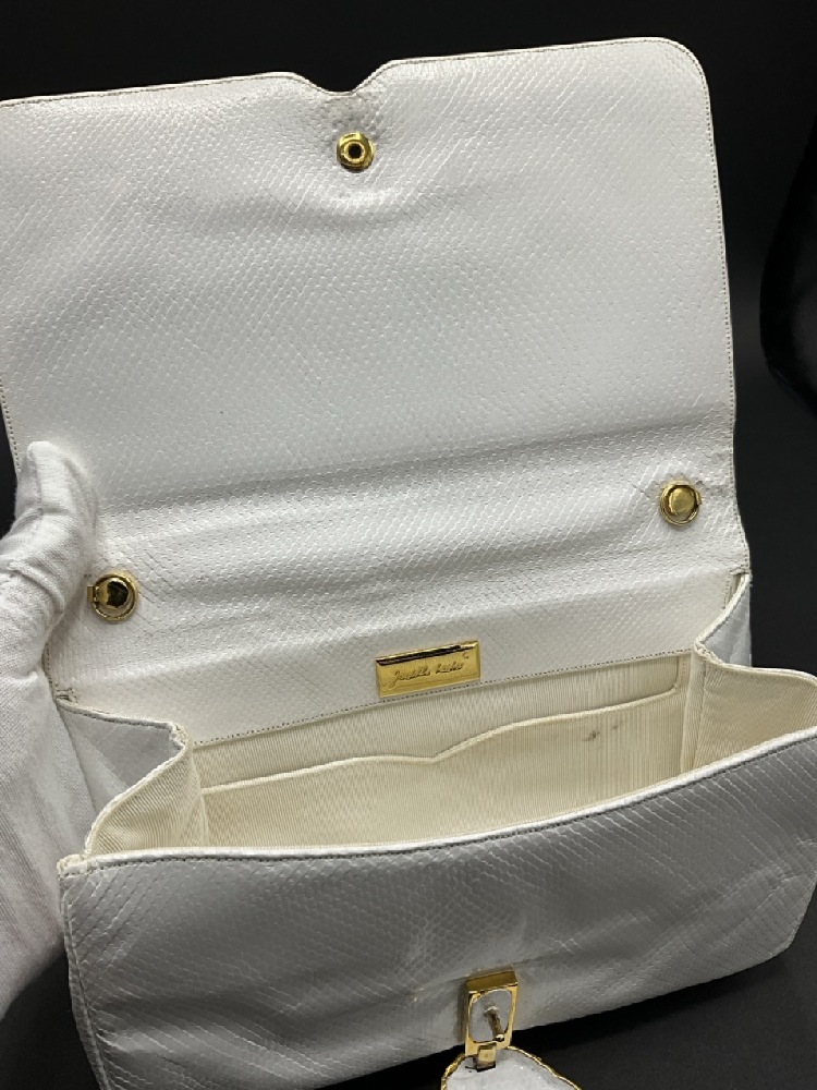 Judith Lieber White Leather Jeweled Purse. With mirror and comb.