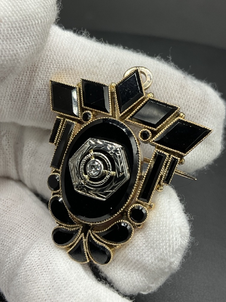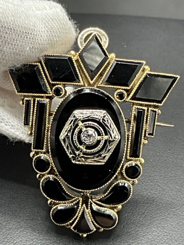 Victorian 14K Gold/Onyx Brooch, Pendant or Watch Fob Pendant.