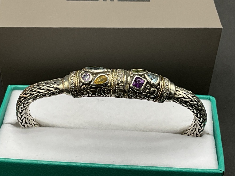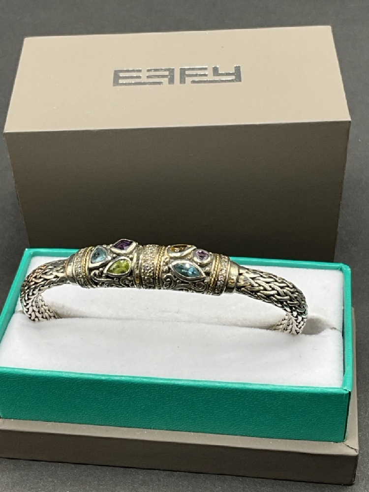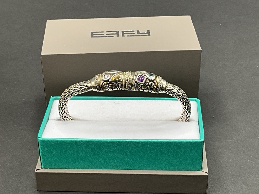 EFFY 925/18K Gold Gemstone and Diamond Bangle Bracelet.