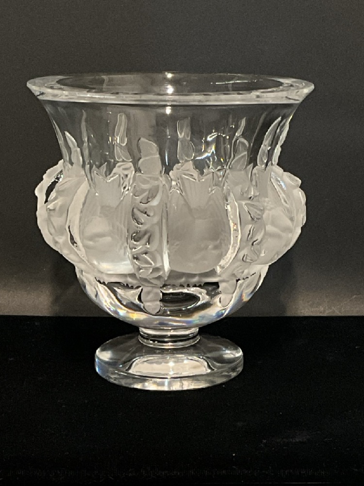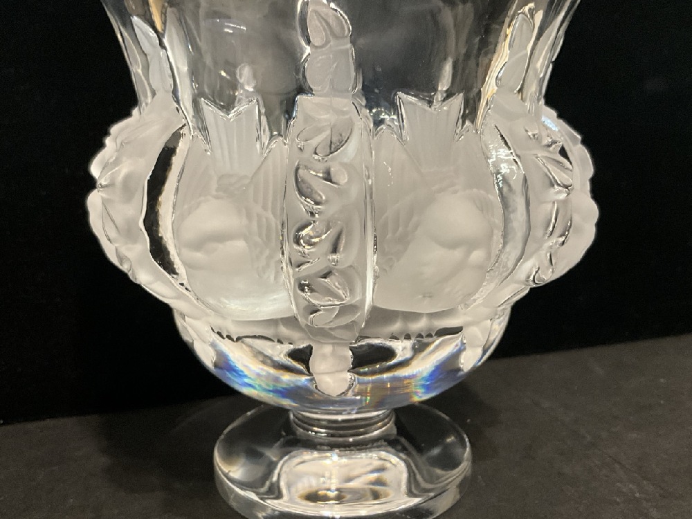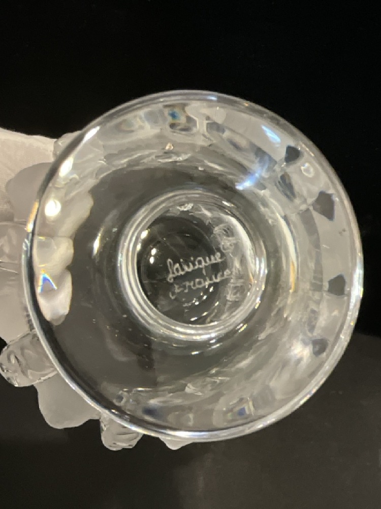 Lalique Dampierre Crystal 20th C. Frosted Sparrows and Vine