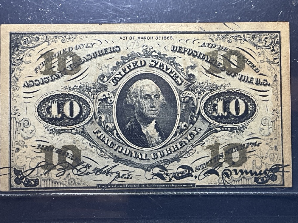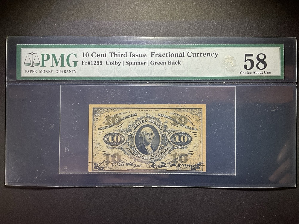 1863 U.S. 10 Cent Fractional Currency PMG 58 Choice AU.