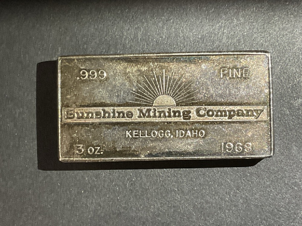Super Toner Rare 1968 3oz. .999 Fine Sunshine Mining Company Silver Bar