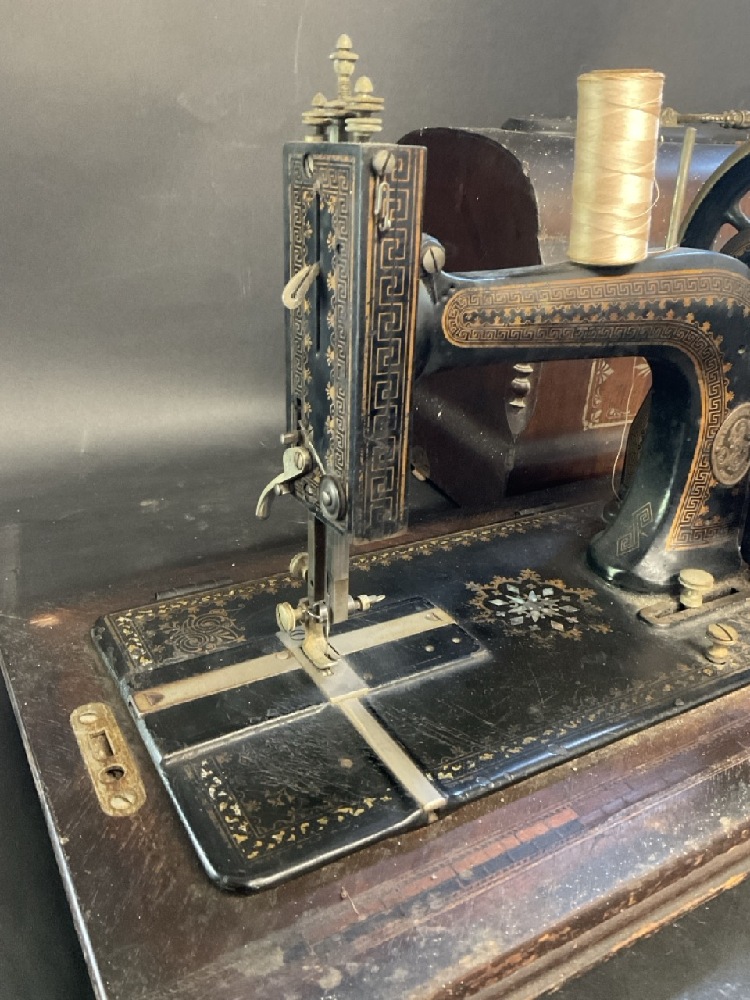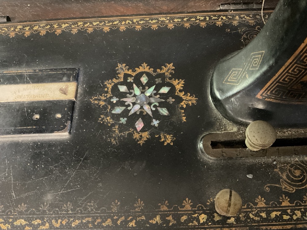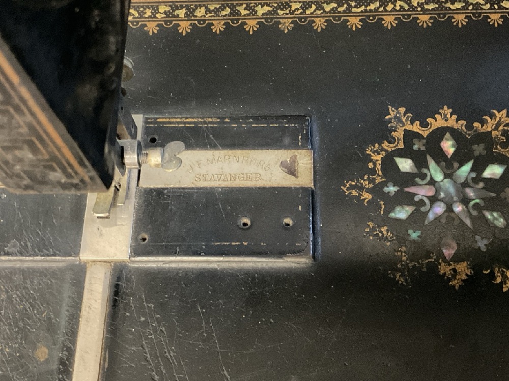 Antique J.F Marnburg & Stavanger Mother Of Pearl Inlaid Sewing Machine - 595715.