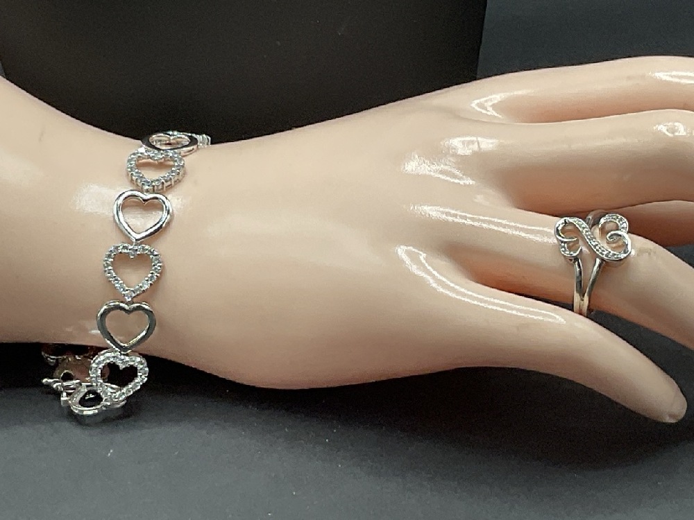Hearts Sterling with Diamonds Necklace, Bracelet, and Ring.
