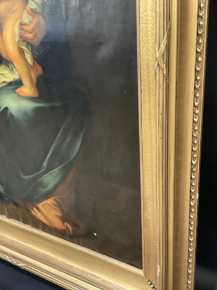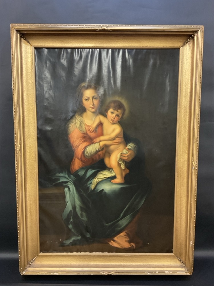Large Oil Painting of Madonna with Child Aft. Bartolome Esteban Murillo. Housed in a fine giltwood frame. Please see photograph preview.