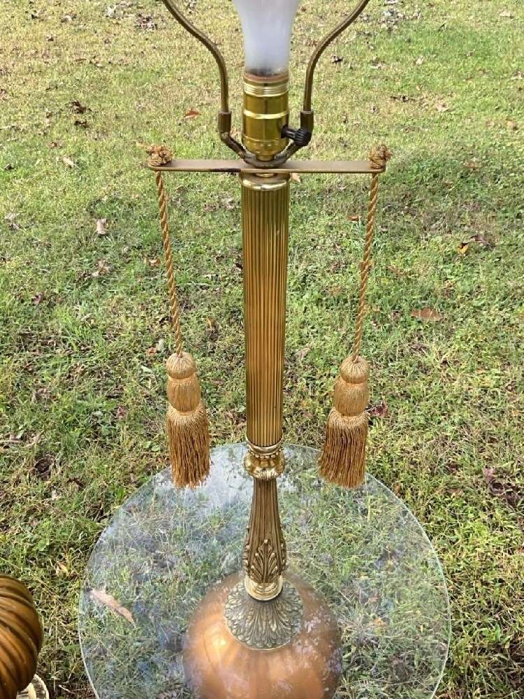 Shade wire is loose. Lamps very clean and in good condition. Please see photograph preview.