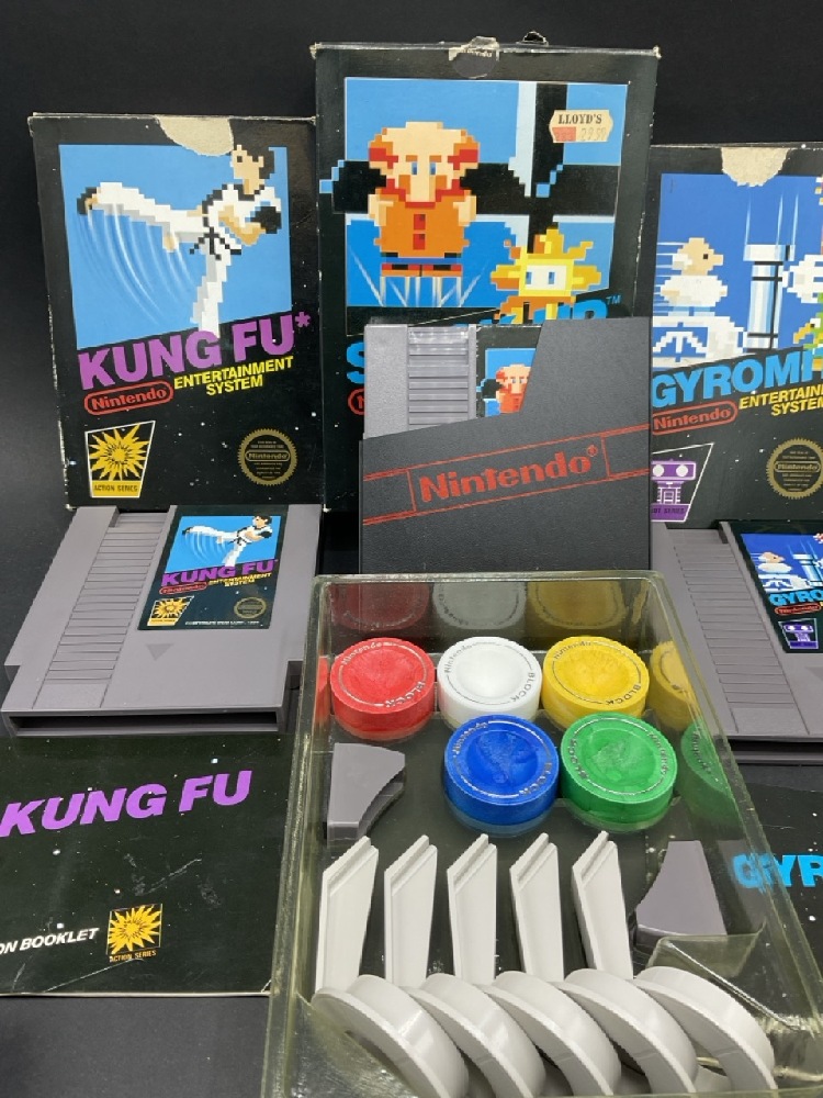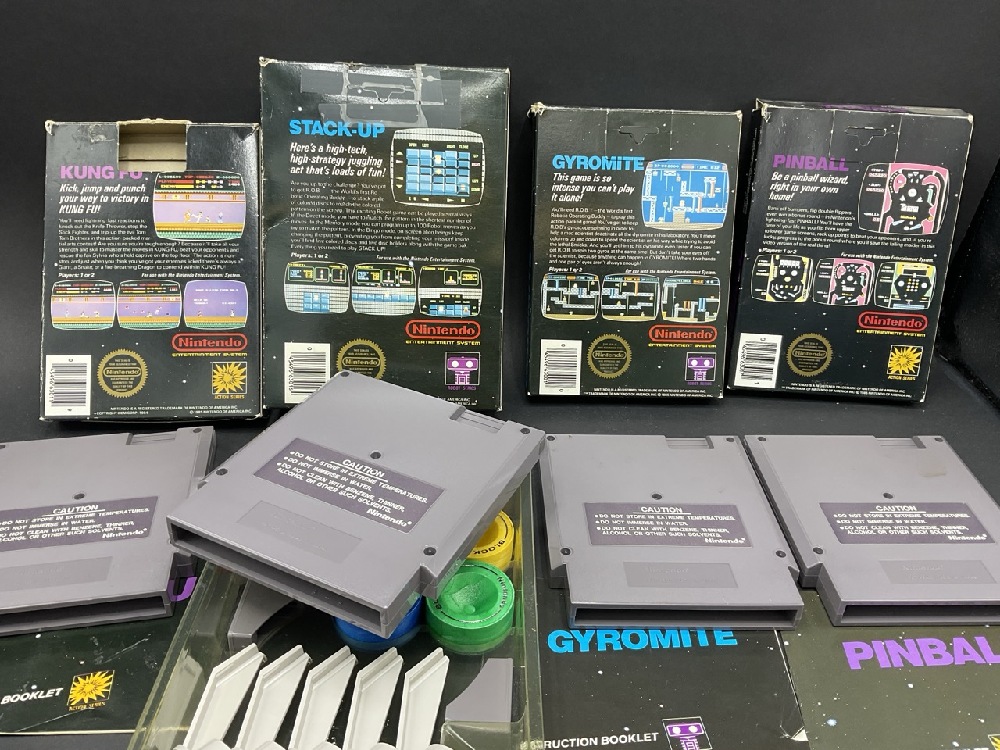 Four (4) Nintendo NES VIdeo Games. Kung Fu, Stack On, Pinball and Gyromite.